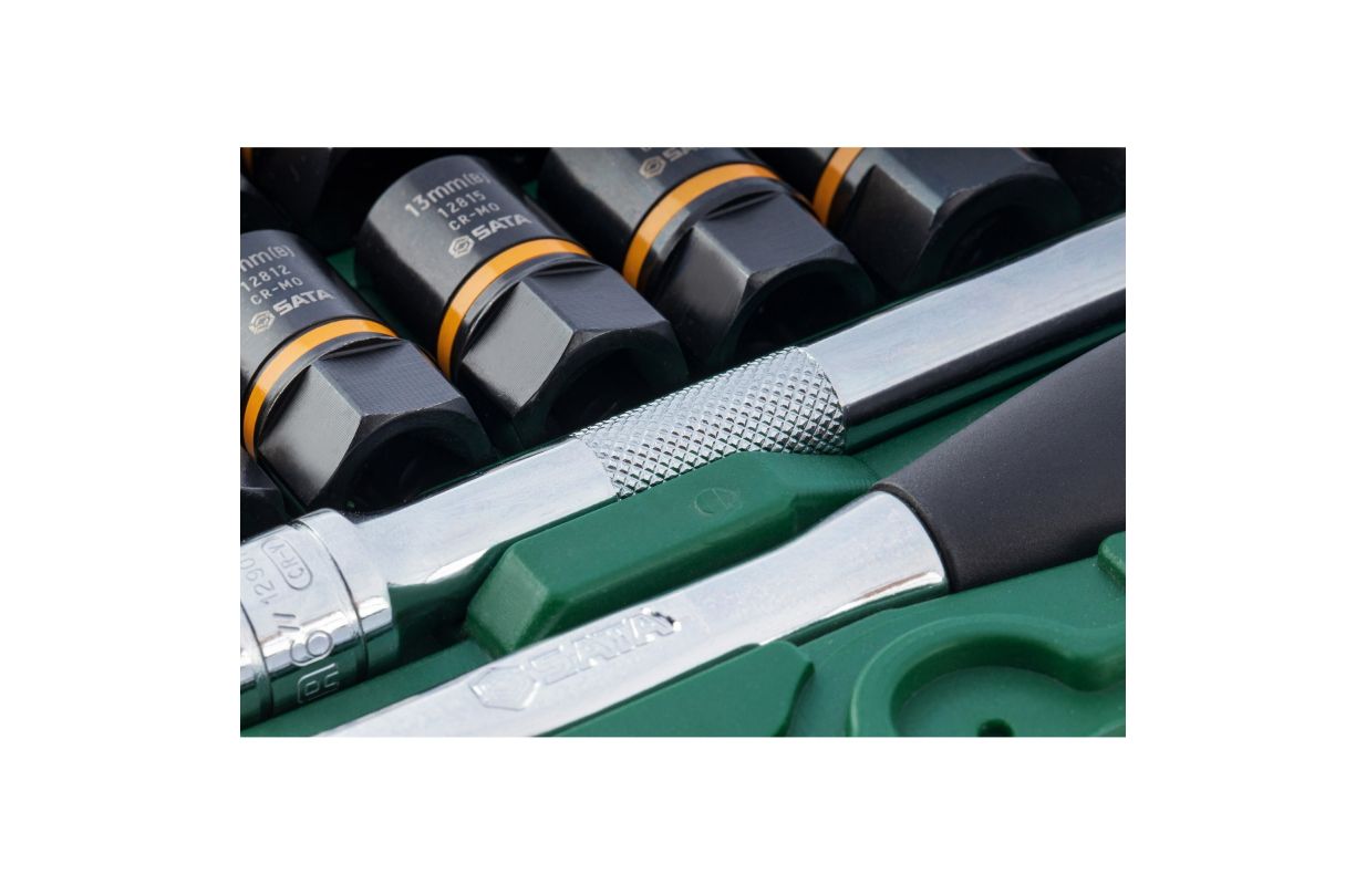 Two sizes of sockets work with both inch (SAE) and metric systems