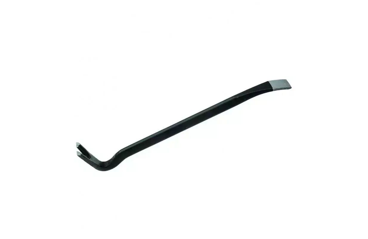A crowbar with an extractor for undermining, pulling out nails. It is made of high durability tool steel with a flat bar cross-section. The crowbar ends in a nail extractor on one side and a flattened tip for undermining on the other.