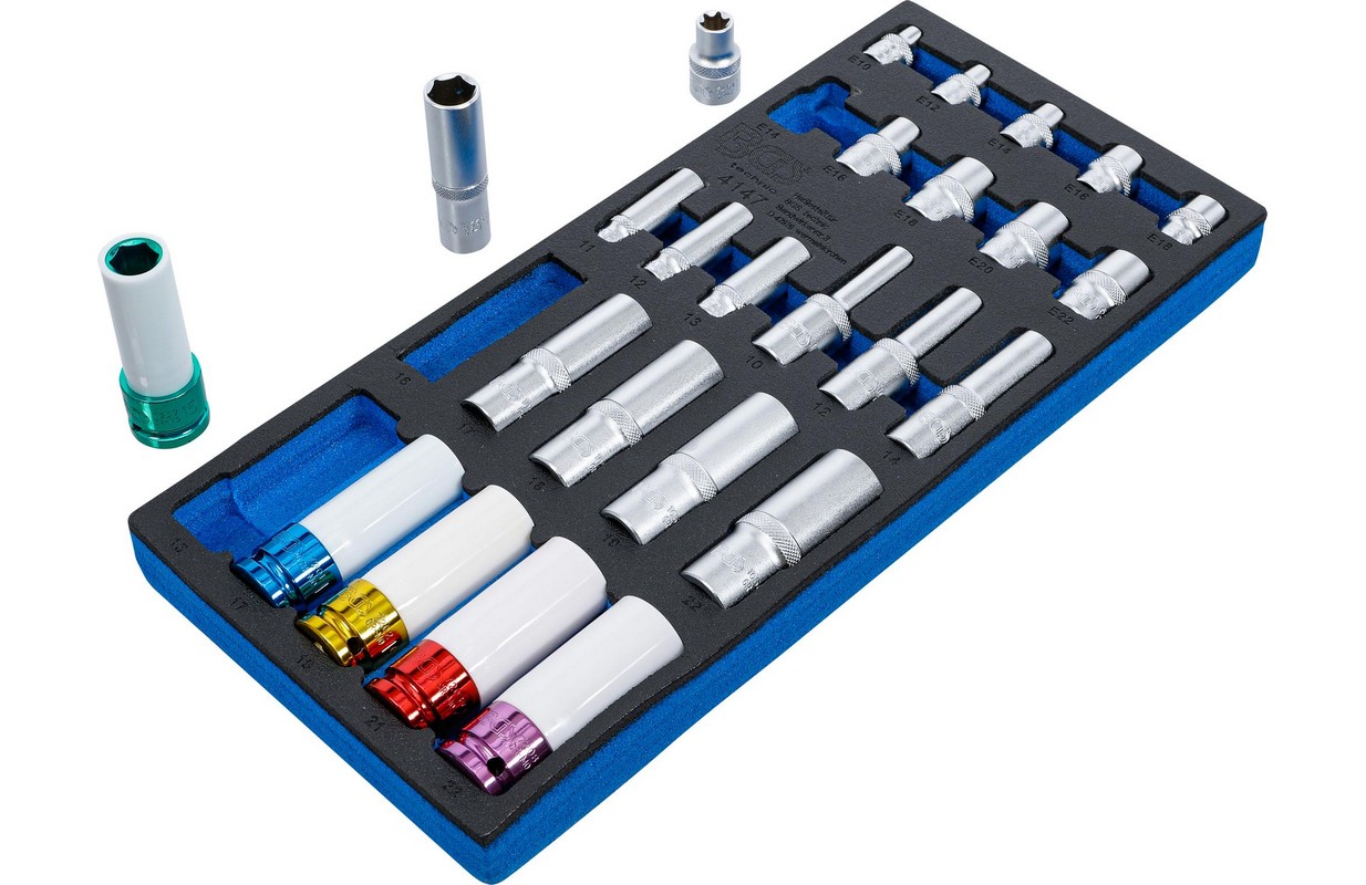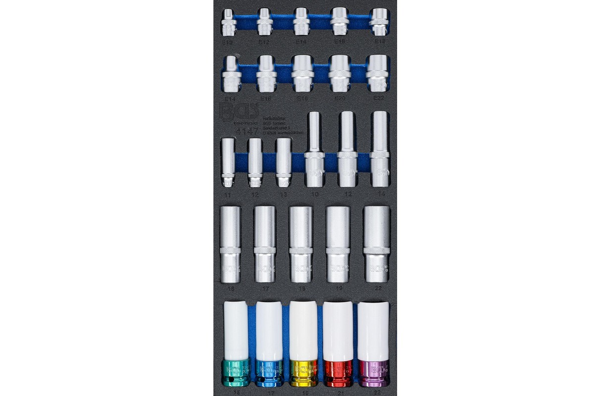 Tool Tray 1/3: Sockets | Hexagon, deep 11 - 22 mm | E-Type E10 - E22 | 6.3 mm (1/4"), 10 mm (3/8"), 12.5 mm (1/2") | 26 pcs. (4147)