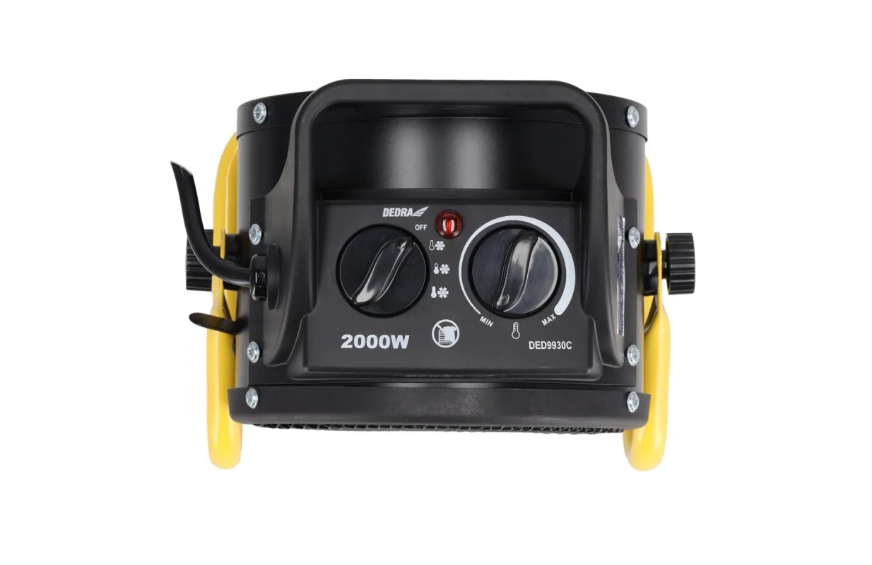 It is used for heating residential and commercial spaces such as basements, garages, workshops, etc. The device is intended for use as an additional heat source, not as the main heat source. The unit has overheating prevention. It is designed for continuous operation and does not generate dirt or odor during operation. An axial fan and durable low-temperature heaters are used. The heater has abuilt-in temperature sensor, power regulator and thermostat. When the temperature dial is set to minimum, the unit can be used as a fan without heating function. The heater is easy to transport due to its low weight, small dimensions and convenient handle.