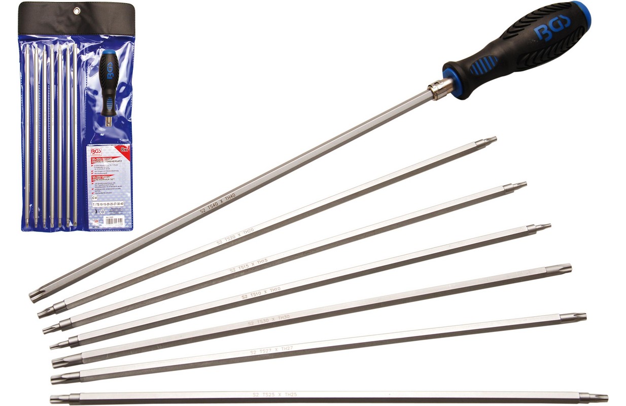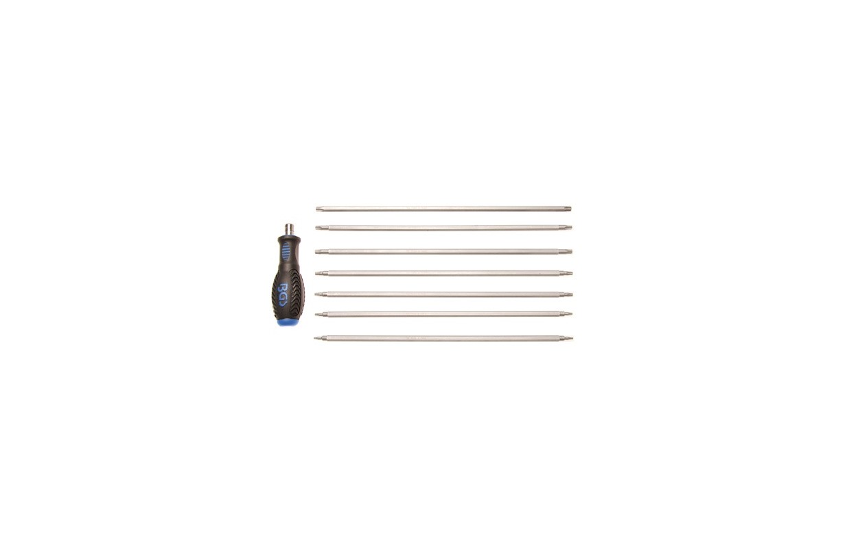 • double ended blades with TS-/T-star (for Torx) in each of the following sizes: 10 - 15 - 20 - 25 - 27 - 30 - 40