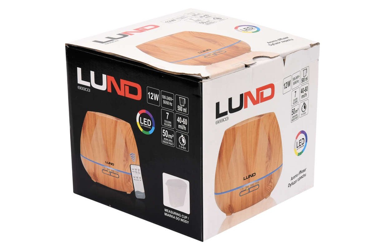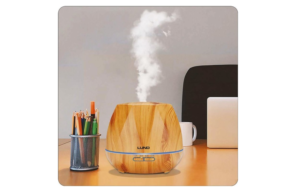 Ultrasonic fragrance diffuser with aromatherapy function, whichóry can also serve as an air humidifier. The advantage of the device is the ability to set the operating time, light color, mode and type of mist. The 500ml capacity will provide up to 10h of continuous operation