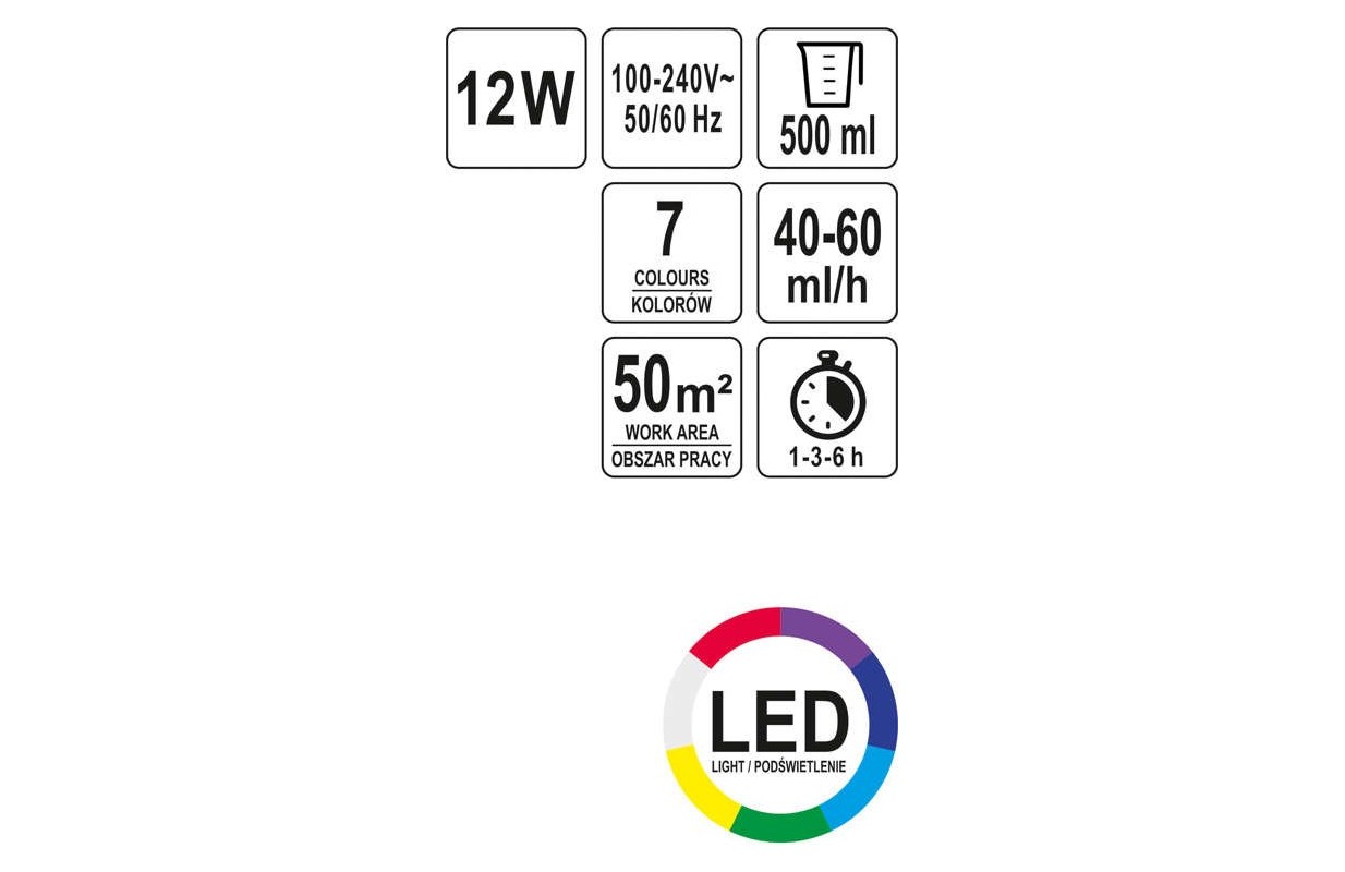 .Quiet operation of the device - thanks to the use of ultrasonic technology, it works silently, distributing a pleasant, refreshing mist throughout the room.
