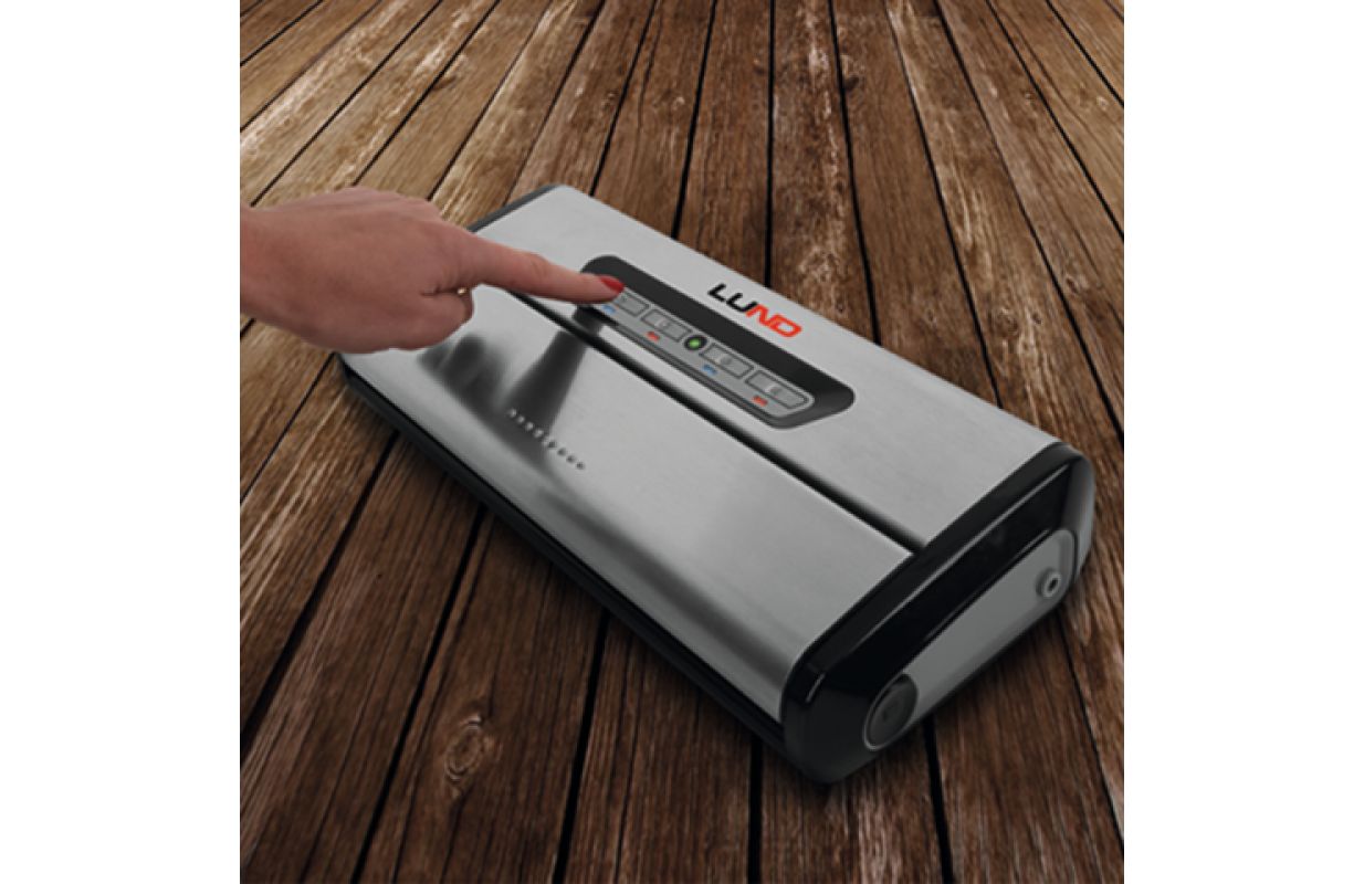 Wide selection of dedicated LUND accessories: embossed bags (index 67887: 20x30 cm; index 67888: 25x35 cm), sleeve with bags (index 67883: 25x600 cm; index 67884: 28x600 cm), hose for containers (index 67872) and two vacuum containers (index 67890: 0.75l and 1.5l)