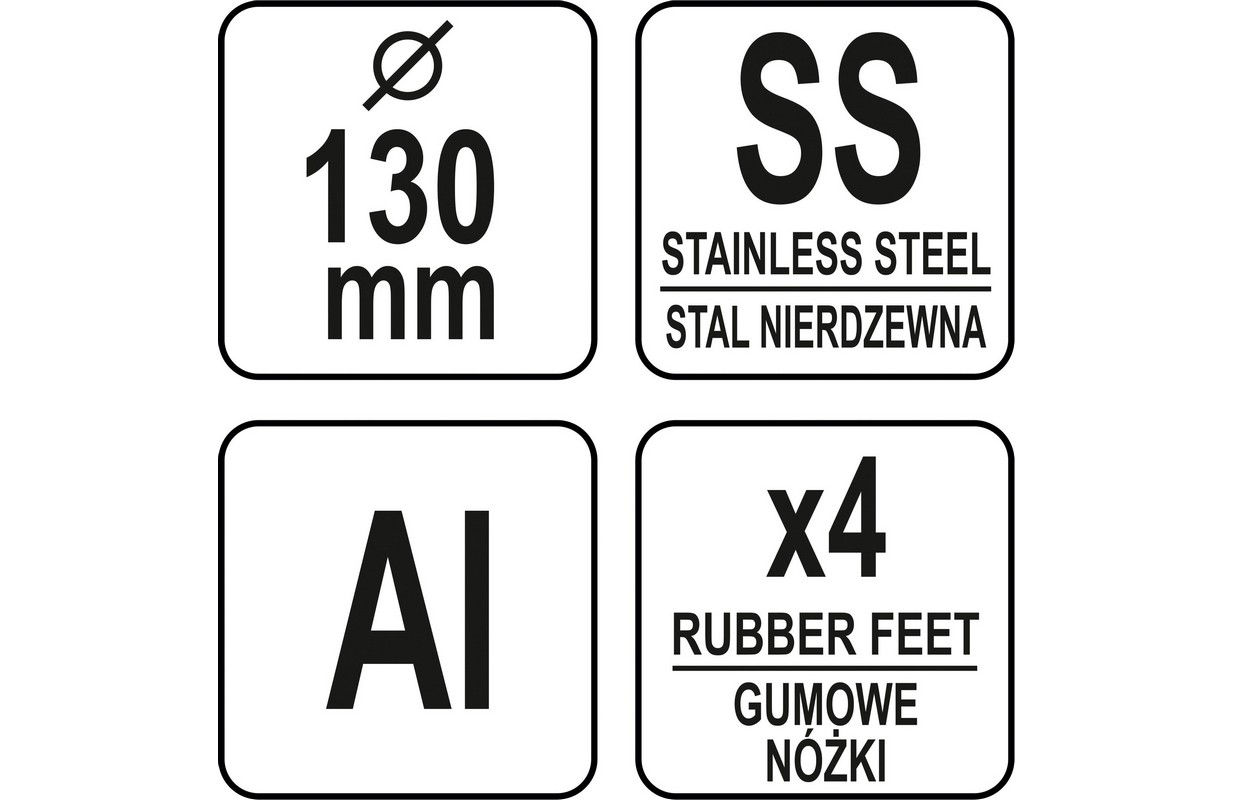 The machine is equipped with four non-slip rubber feet that provide stability and prevent movement during operation. Technical data Index number YG-03405 Brand Yato PCS unit Diameter [mm] 130
