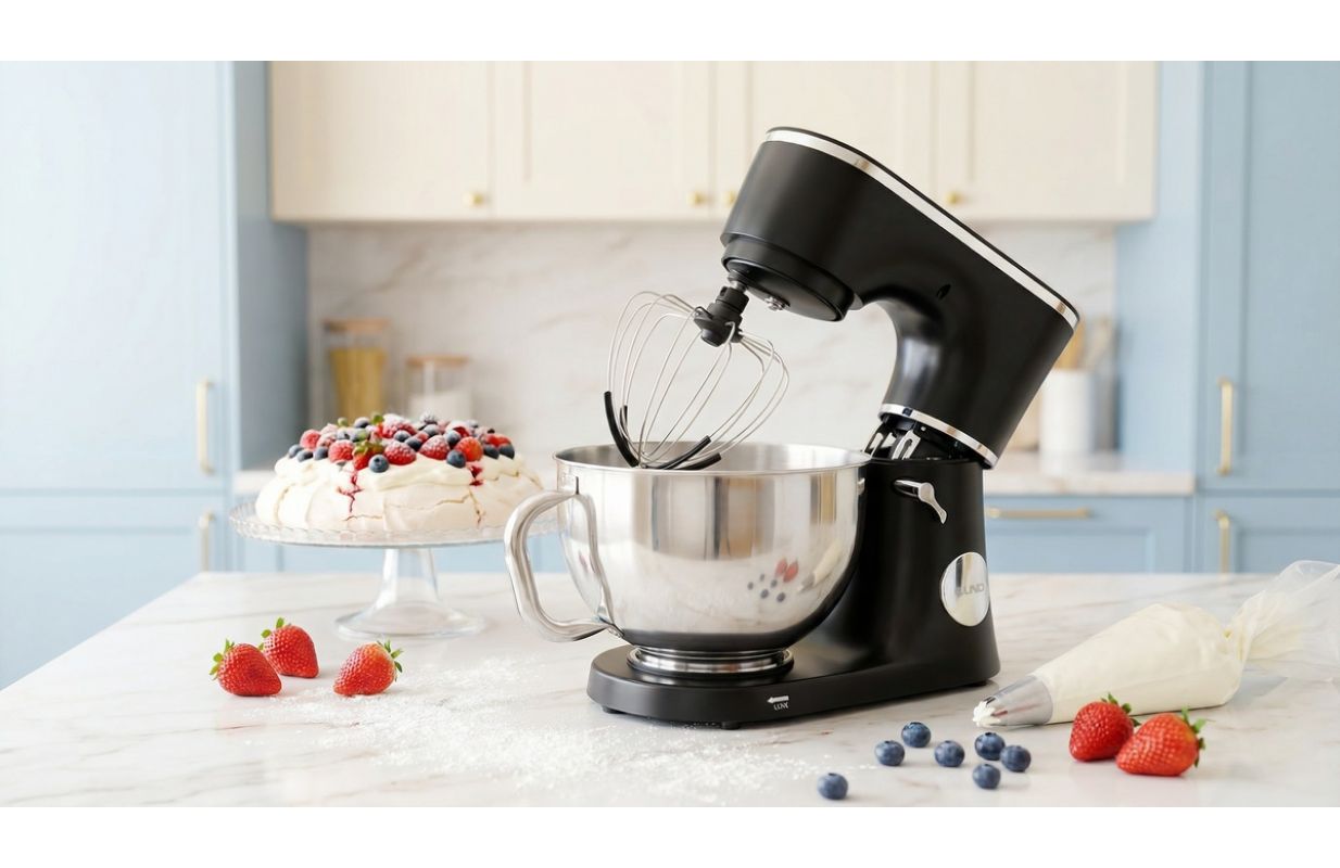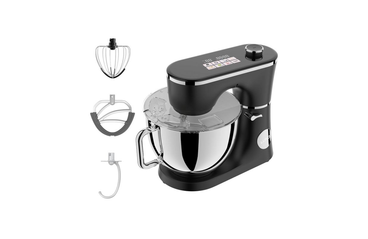 Digital control panel with LED display and knob - Modern and intuitive control system that combines a clear LED screen with a convenient control knob. It allows precise setting of working time (up to 30 minutes), selection of one of 8 speeds, and quick start and pause of the mixer. The panel also offers ready-made automatic programs (kneading, mixing, whipping), and after a period of inactivity, the device automatically enters standby mode, saving energy.