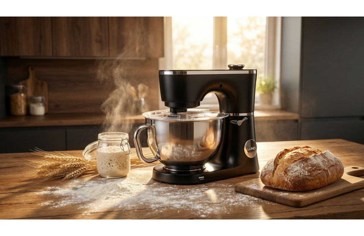 Maximum dough capacity: 1.5 kg - The mixer effortlessly kneads up to 1.5 kg of dough, significantly exceeding the capabilities of standard, cheaper models with a capacity of 1 kg. It allows for preparing larger portions at once, ideal for baking bread, pizza, and yeast dough for the whole family.