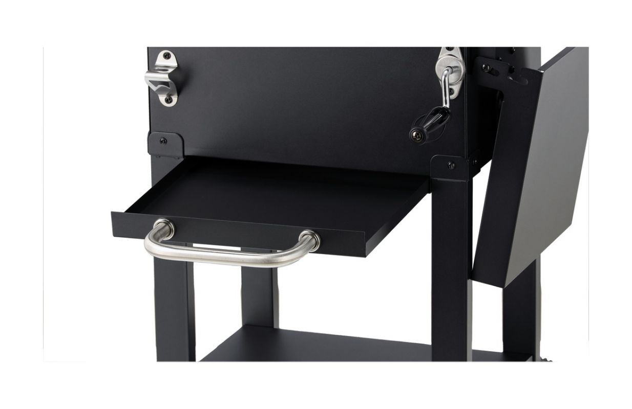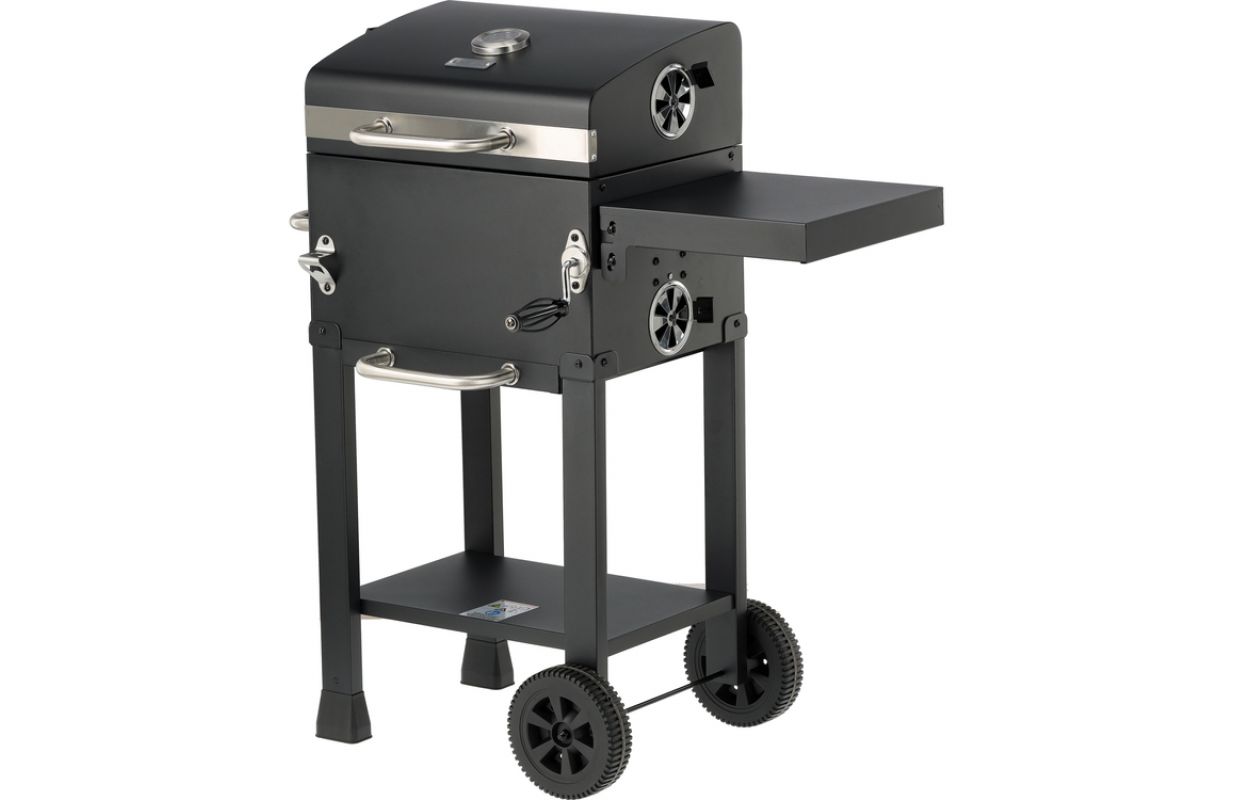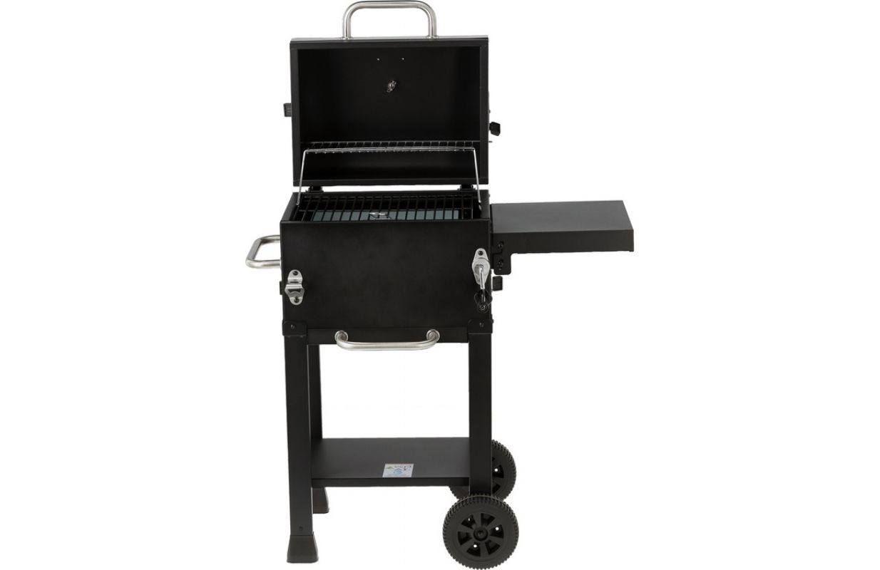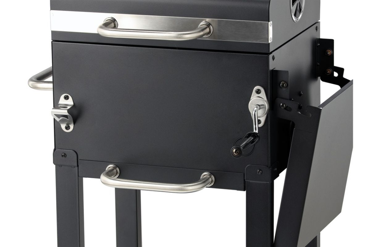 Practical shelves and handles - a folding side shelf serves as a worktop, and the lower shelf can hold charcoal, dishes, or grill accessories. Steel handles allow you to conveniently hang tongs or a spatula and operate the grill.