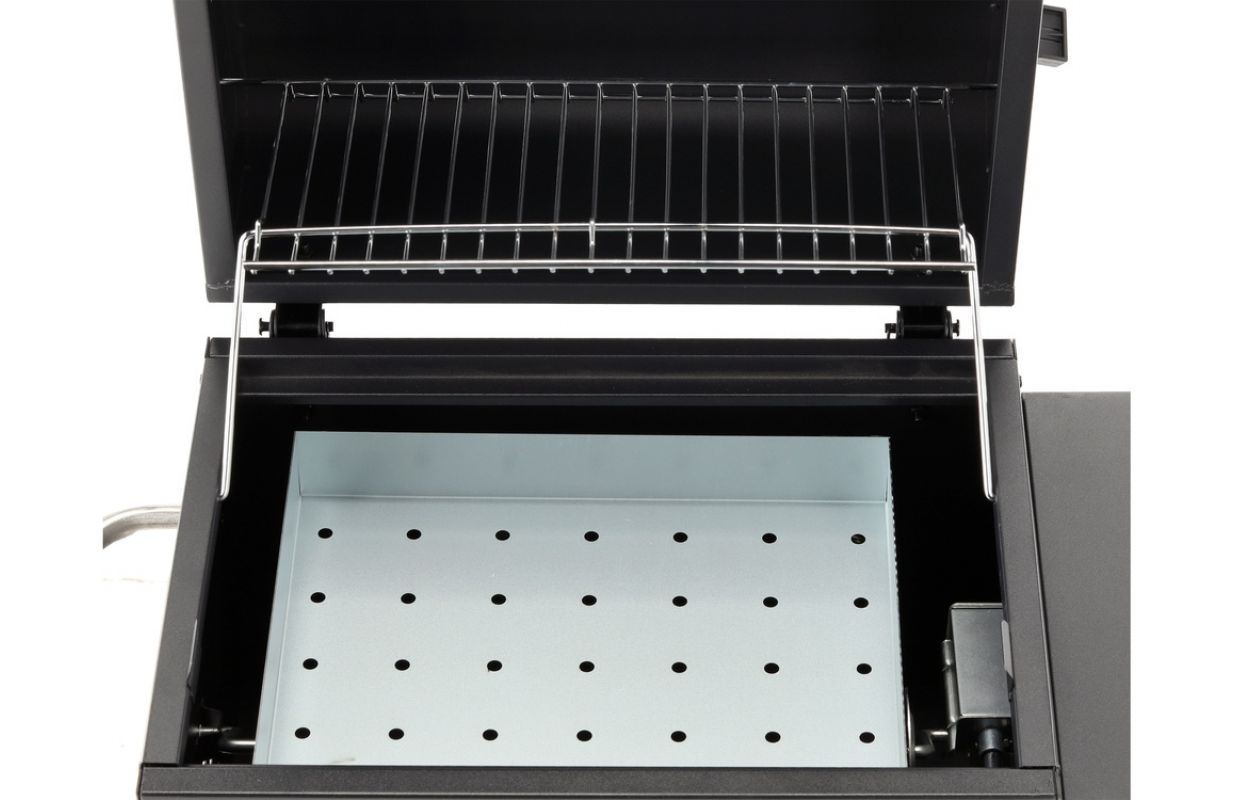 Functional grilling surface - a steel, enameled grate measuring 39.5 × 29.5 cm and 3 mm thick ensures even heating and stable temperature maintenance during grilling. An additional warming rack with a surface area of 38 × 20 cm allows for placing ready dishes or gently keeping them warm without direct contact with the heat.