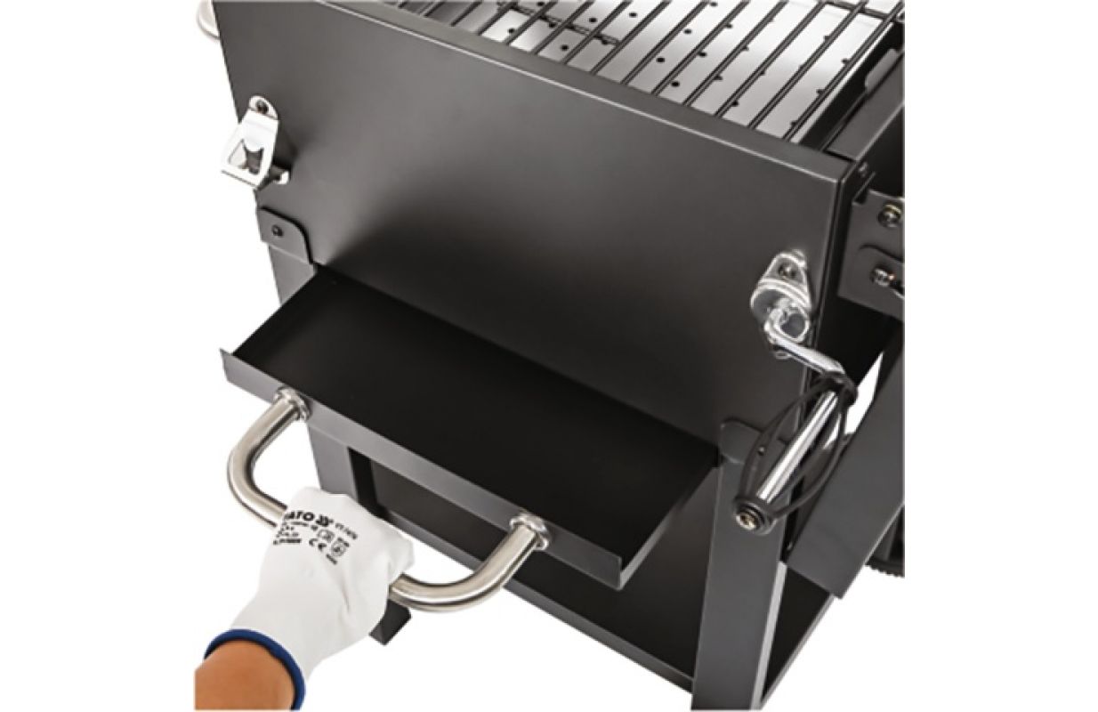 User-friendly and easy to clean - a pull-out ash pan significantly facilitates cleaning after grilling. A large, ergonomic handle on the lid increases operational safety.