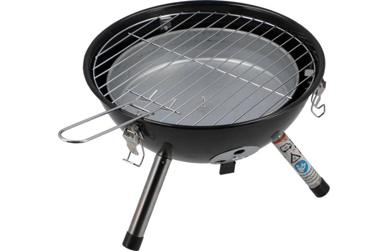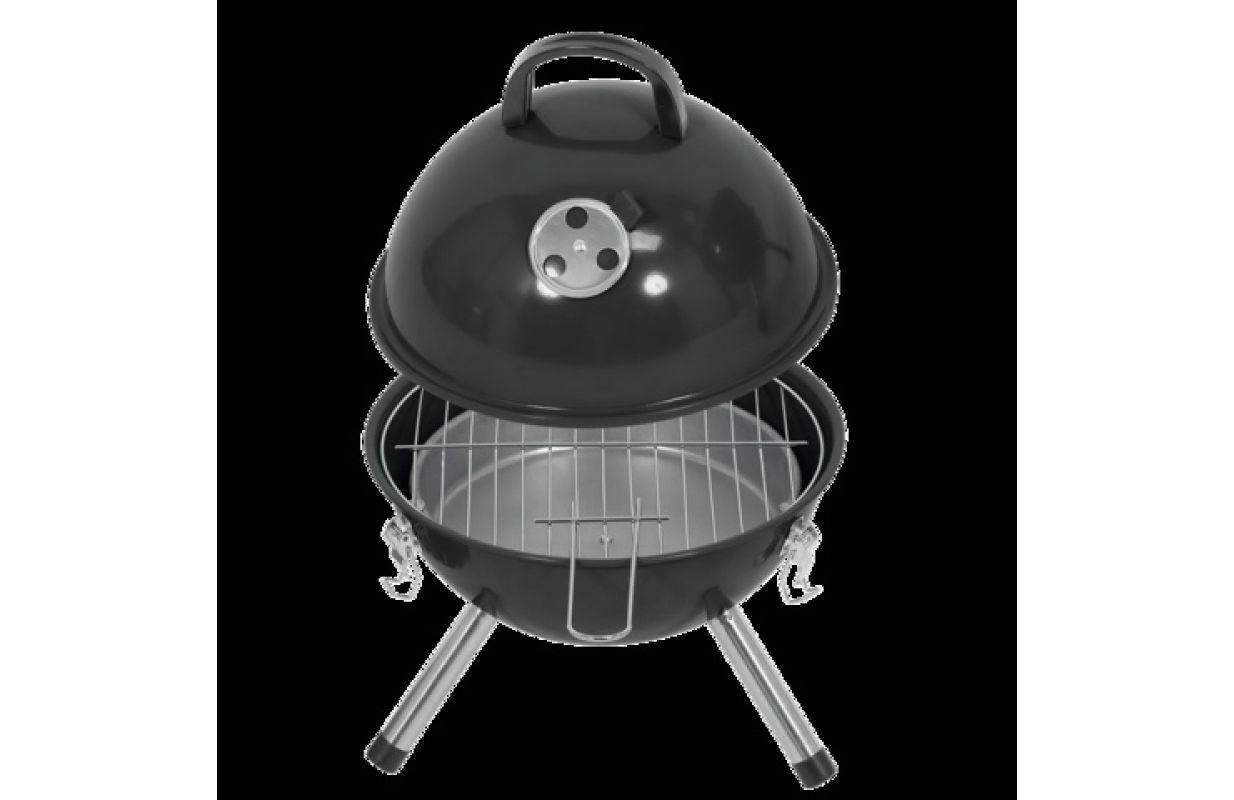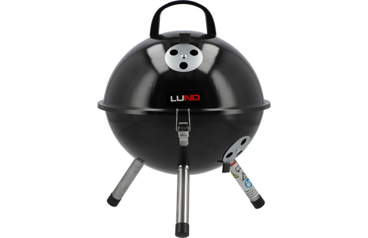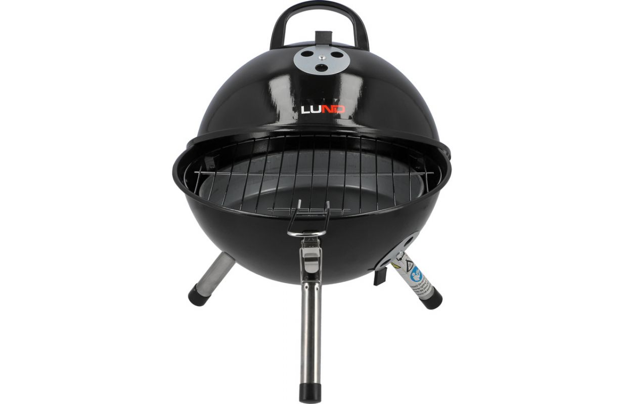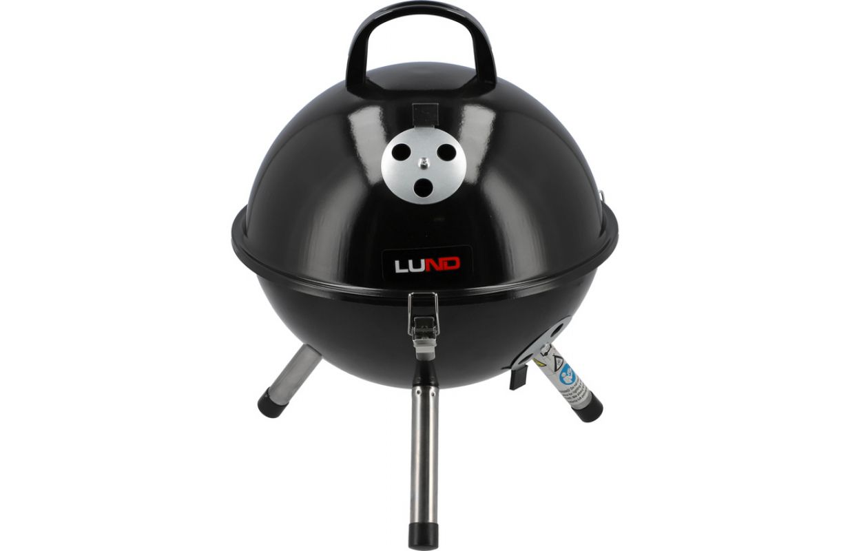 Classic LUND 99922 round touring charcoal grill with chrome-plated grate and temperature-retaining lid. It is equipped with numerous amenities - a galvanised hearth, apertures to regulate air circulation and buckles to close the lid tightly. The barbecue meets and has safety standards.