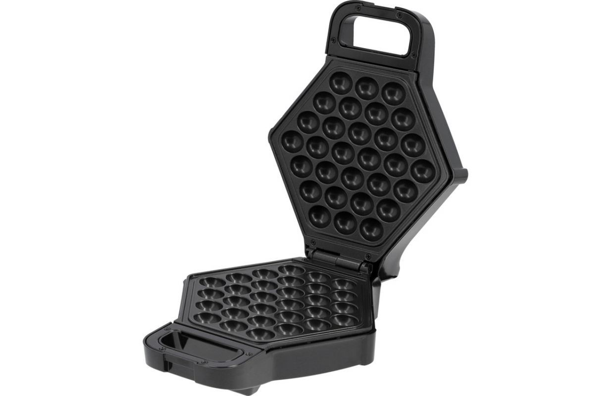 Waffle maker for the preparation of trendy Asian bubble waffles. The ability to rotate the appliance 180 degrees allows you to make perfectly baked waffles, while the non-stick coating will ensure even toasting and easy removal from the hob. The handle does not heat up when the waffle iron is in use. The appliance can be stored in a vertical position.