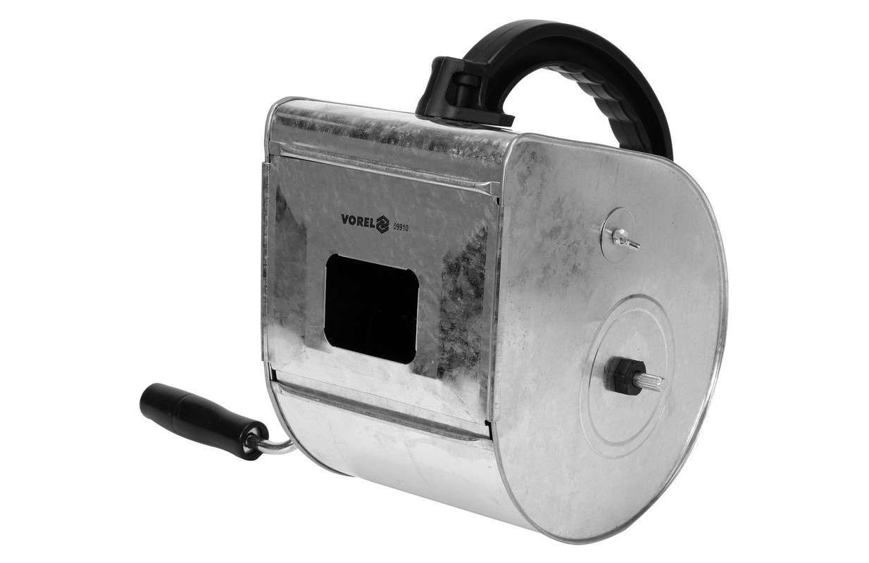 Place the finished plaster mortar in the container and point the outlet of the container towards the surface to be plastered. By turning the crank throw the plaster on the wall. Before starting work, make tests by checking the density of the mortar and the distance from the wall.