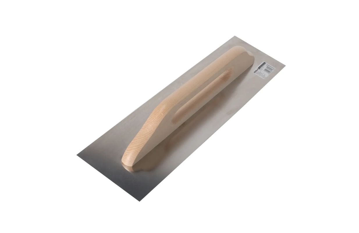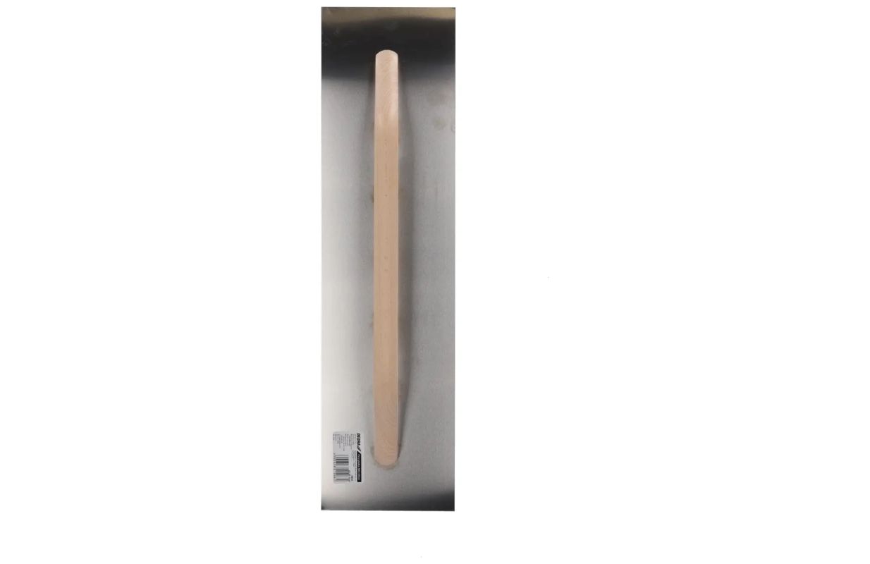 Plastering float made of stainless steel for use in renovation and construction. It is used for the application and spreading of materials such as gypsum plaster, plasterboard, adhesives and plasters over large surfaces. The trowel is made of stainless steel, which makes it rustproof and easy to clean after work. The wooden handle has been specially shaped to make working with the tool more comfortable.