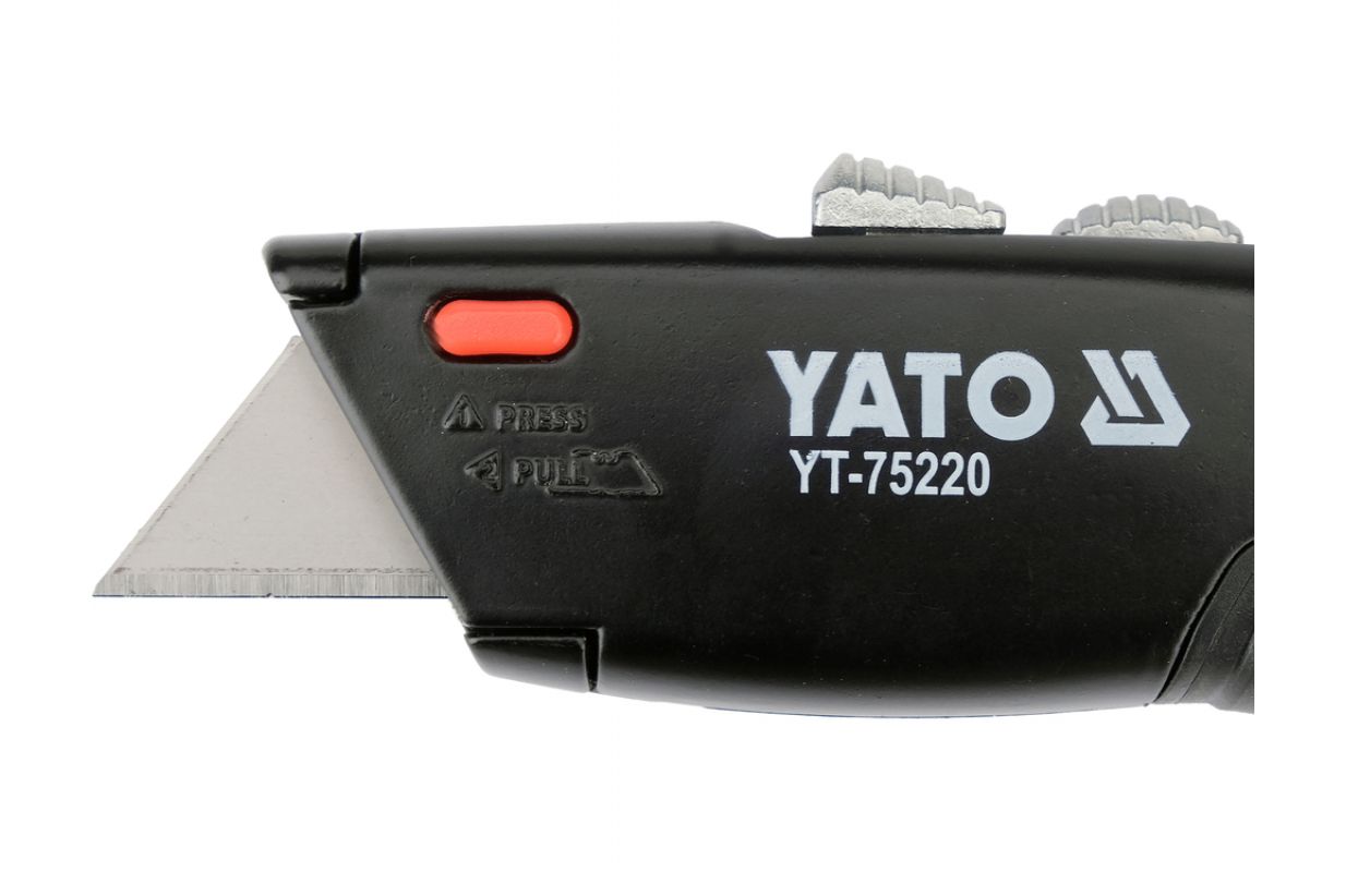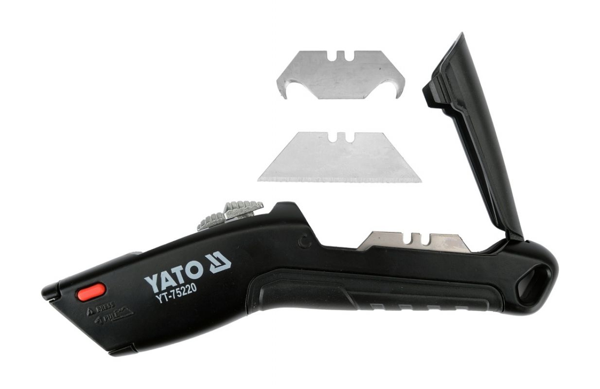 Double-blade knife designed for installation, warehouse, and finishing work, where both linear cutting and safe opening of packaging materials are required. The body made of aluminum and zinc alloy with ABS elements ensures the rigidity of the construction and a comfortable grip. The use of two types of blades allows you to adjust the tool to the type of material without the need to change equipment.