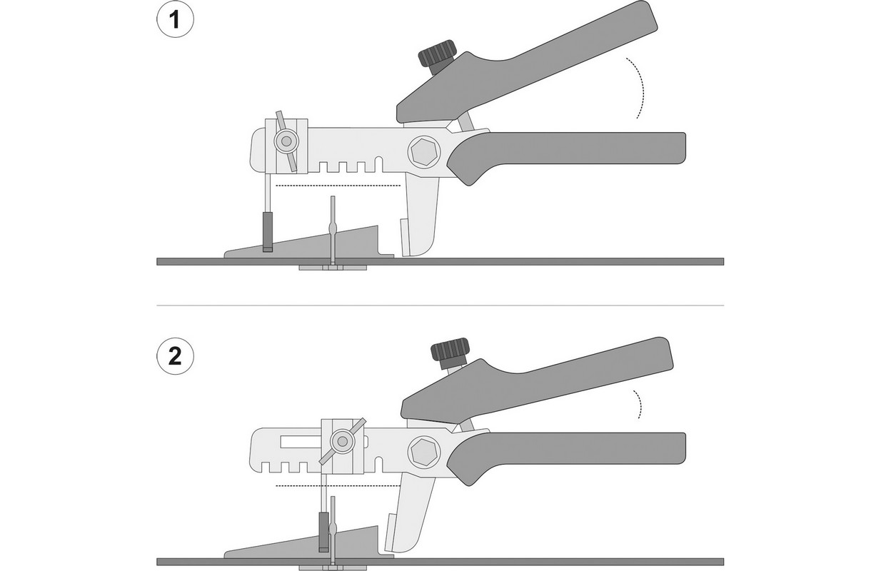 The pliers are designed for effective , fast and yet precise leveling of laid ceramic tiles . They are compatible with various leveling systems using mounting wedges. Pliers in a controlled manner press wedges into the element simultaneously lifting the corners of four adjacent tiles.