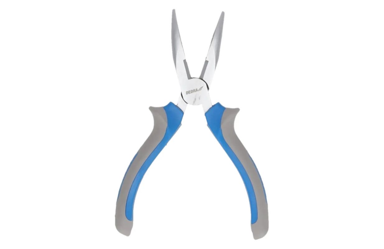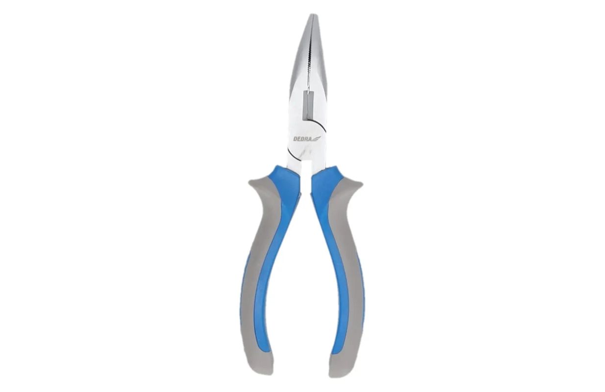 The bent nose pliers have carbon steel jaws. The pliers can be used for gripping flat material and can also be used for cutting wire. The jaws are elongated and curved, which is helpful when working in hard-to-reach places, for example. Handle made of non-slip dual-material. Length 160 mm.