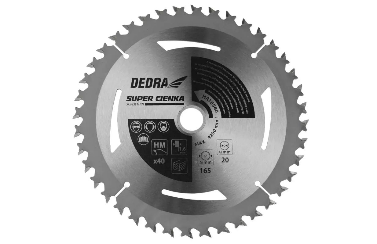 A circular saw blade for cutting all types of wood. To increase the strength of the teeth and improve the quality and efficiency of the cut, the teeth are coated with carbide. The exceptionally thin blade top and narrow widia teeth enable an extremely thin cut.