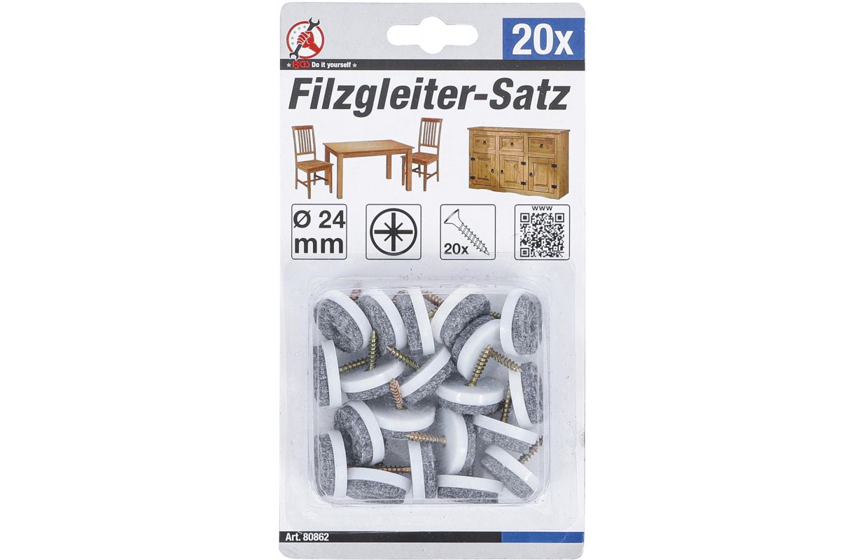 • 20 felt pads, Ø 24 mm, can be screwed