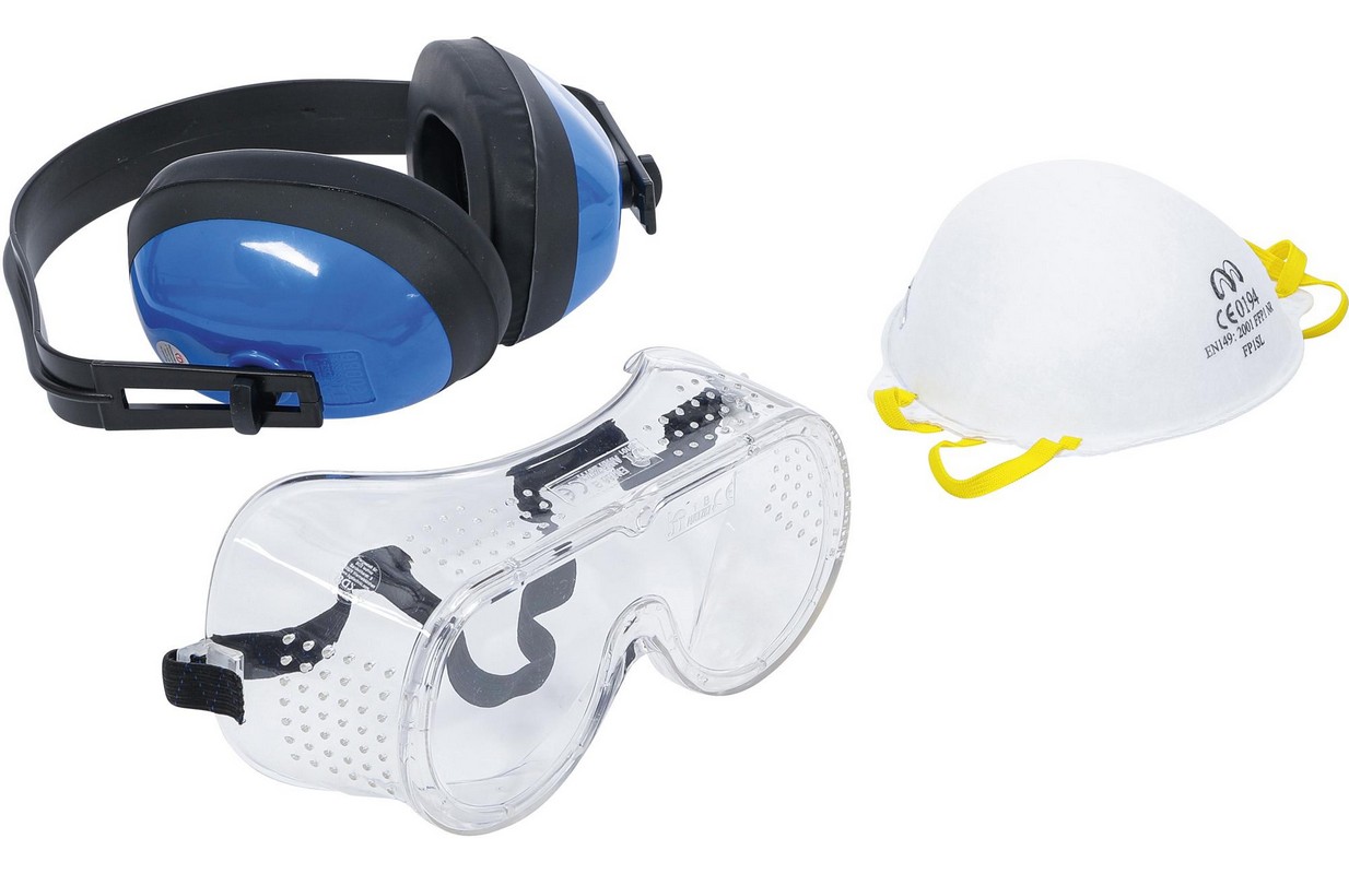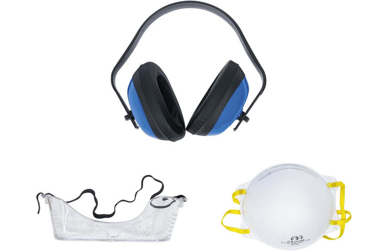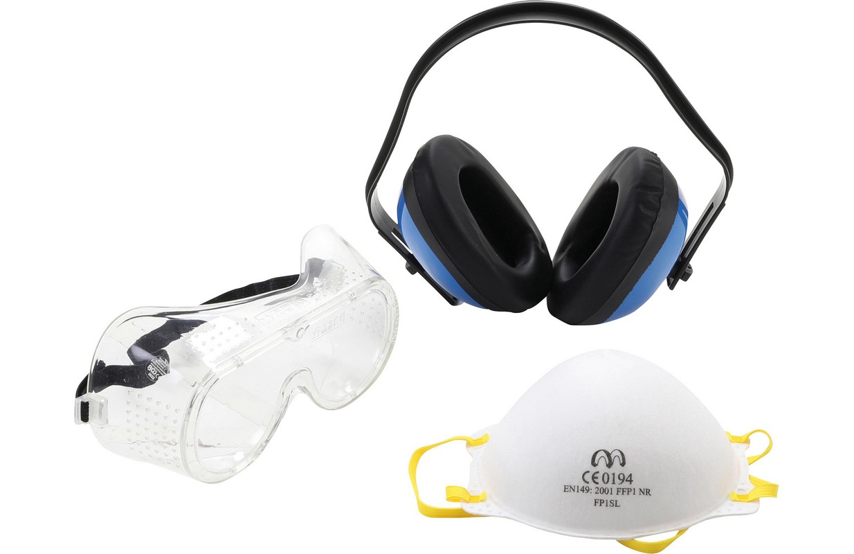 Description ear defenders (EN 352) dust mask (EN 149) safety goggles (EN 166) EN 149 / 166 / 352 Technical data Packaging suitable for wall hanging Yes EN 149 / 166 / 352 Gross weight 244 g