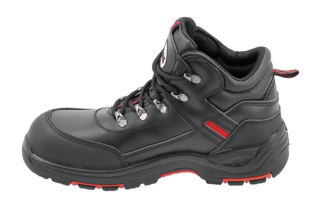The PARAN S3 series of lightweight work boots is a model with an impact-resistant composite toecap, a flexible anti-puncture insole. The sole is dual-material with a non-slip rubber tread with special cuts and inserts made of durable PU in red. Among other things, the shoes offer increased walking comfort thanks to an insole that adjusts to the foot.