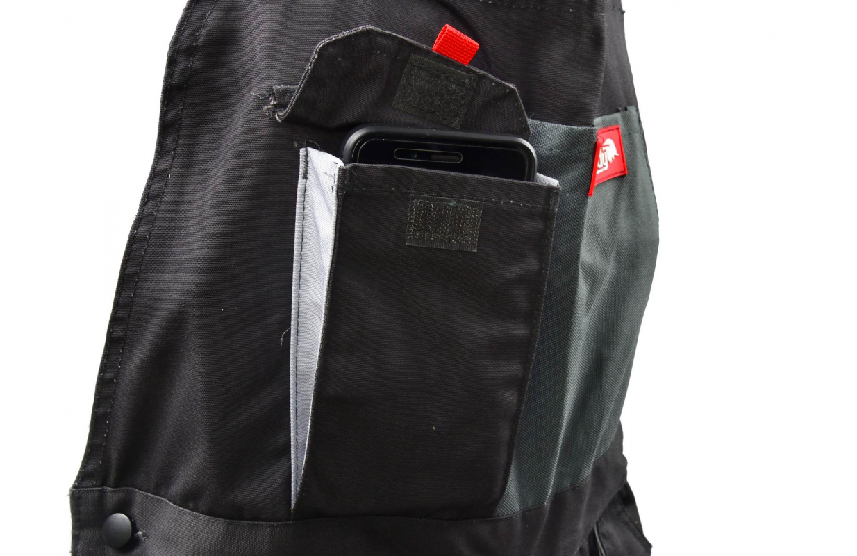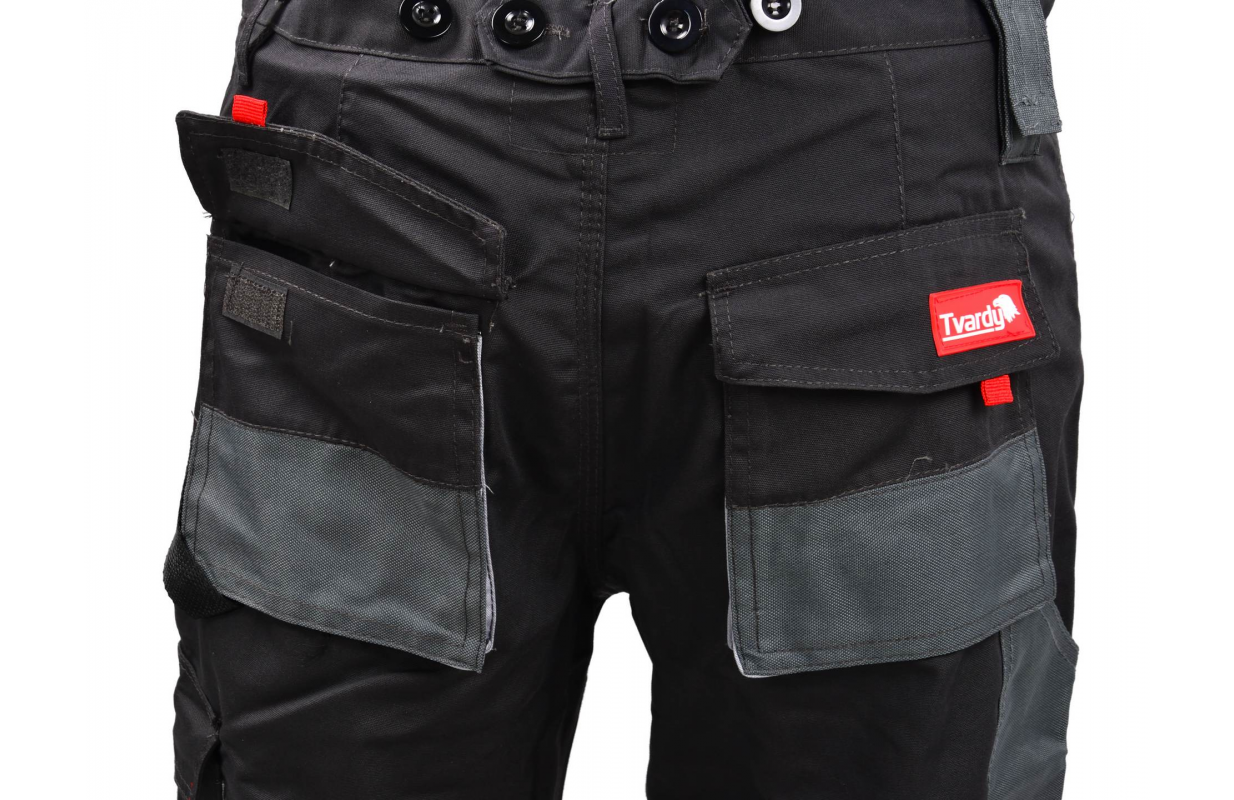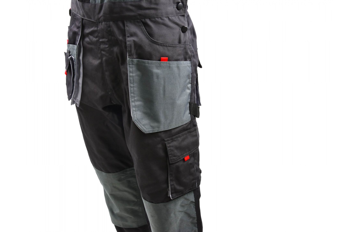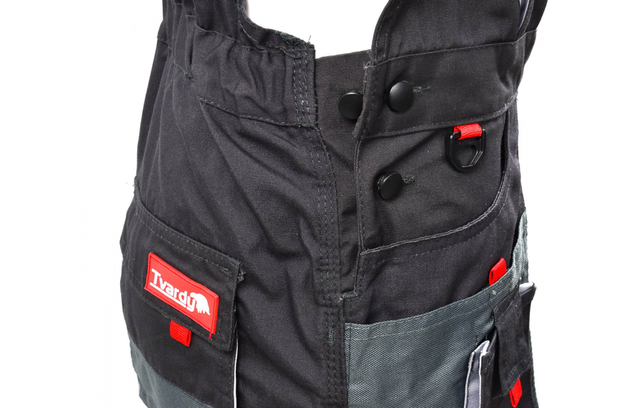 Reinforcement of the material on the knees, straps and pockets.