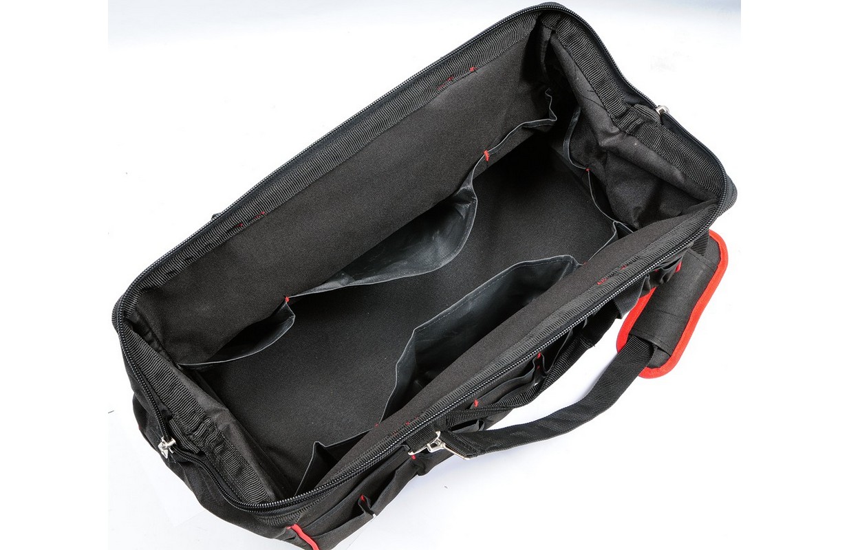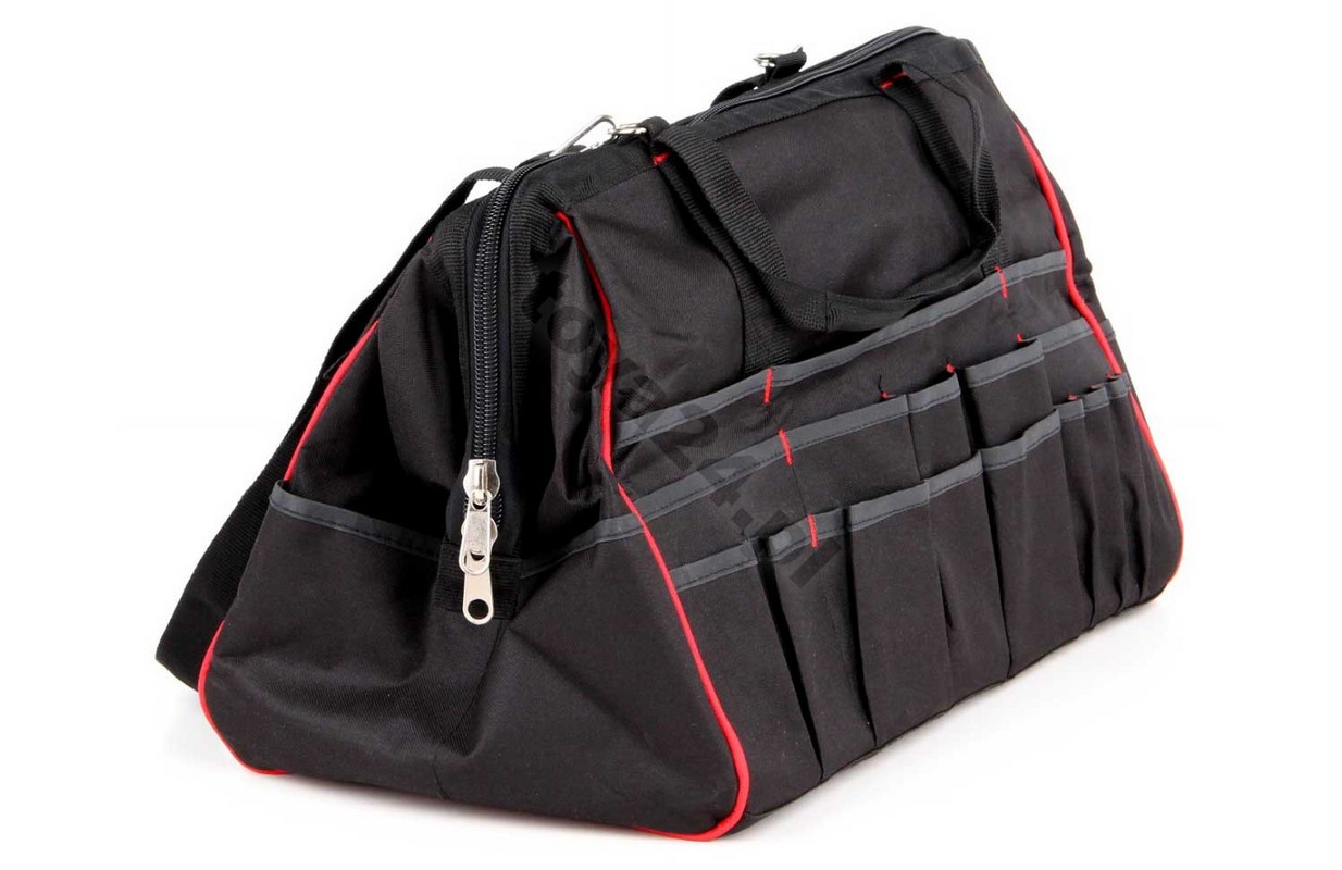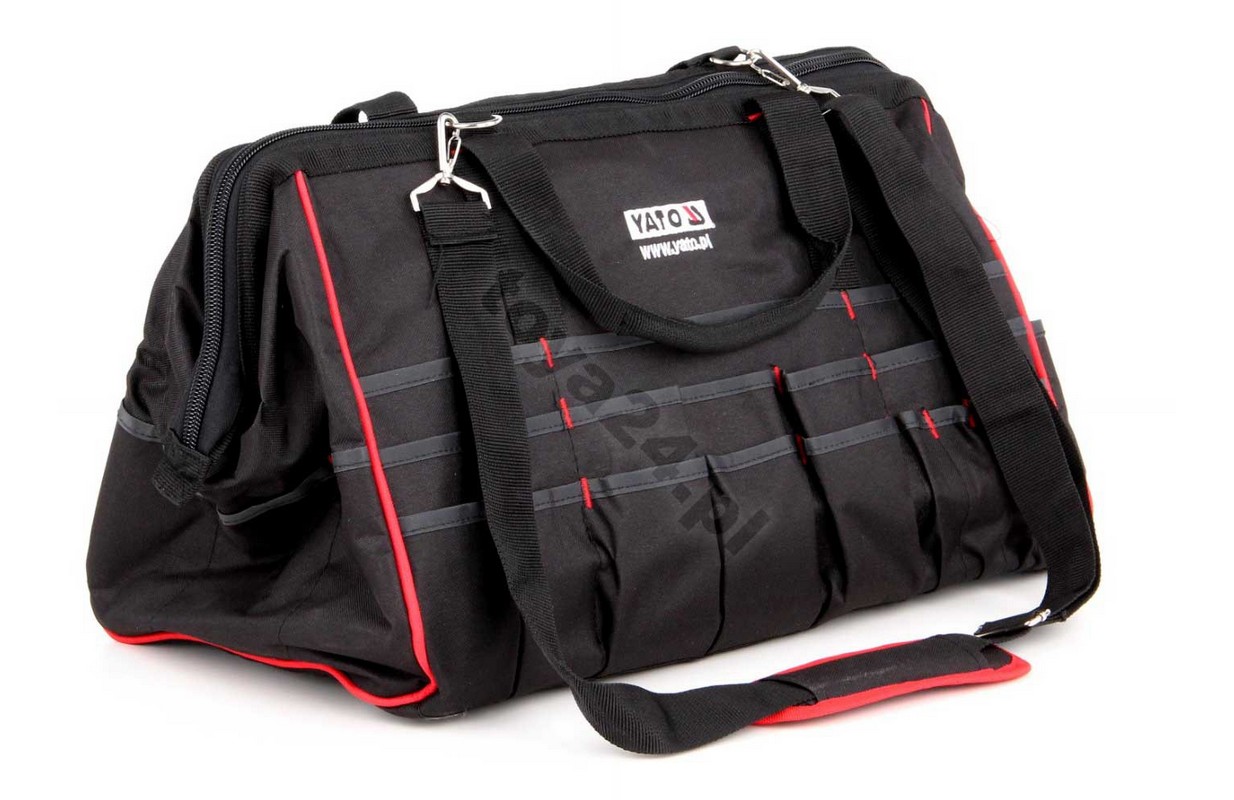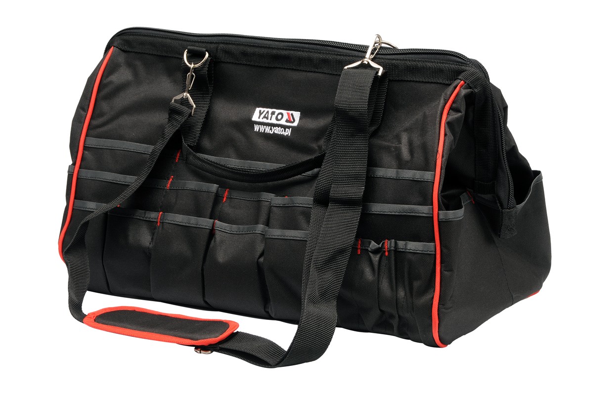 Practical YATO brand tool bag made of enhanced nylon, reinforced with a metal clamp with hinges for easy opening and closing. Practical and easy-action zipper and numerous pockets and compartments make the bag ideal for mobile serviceóworkshopóhome, garden.