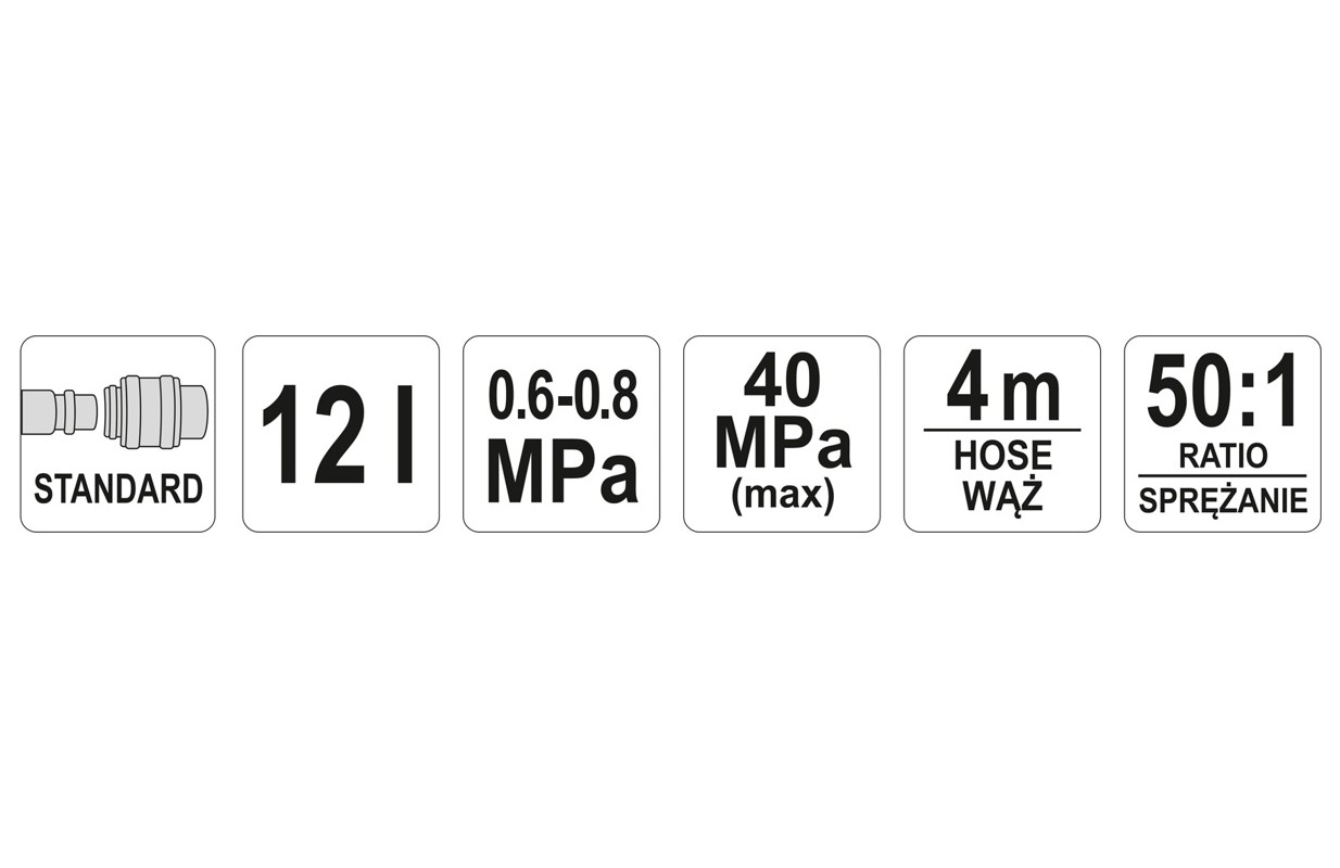 | Air supply hose inside diameter | 3/8" (9.5 mm) |