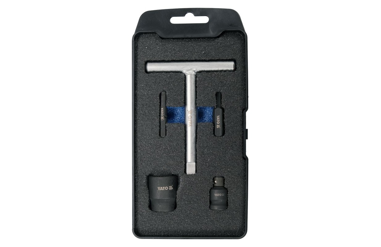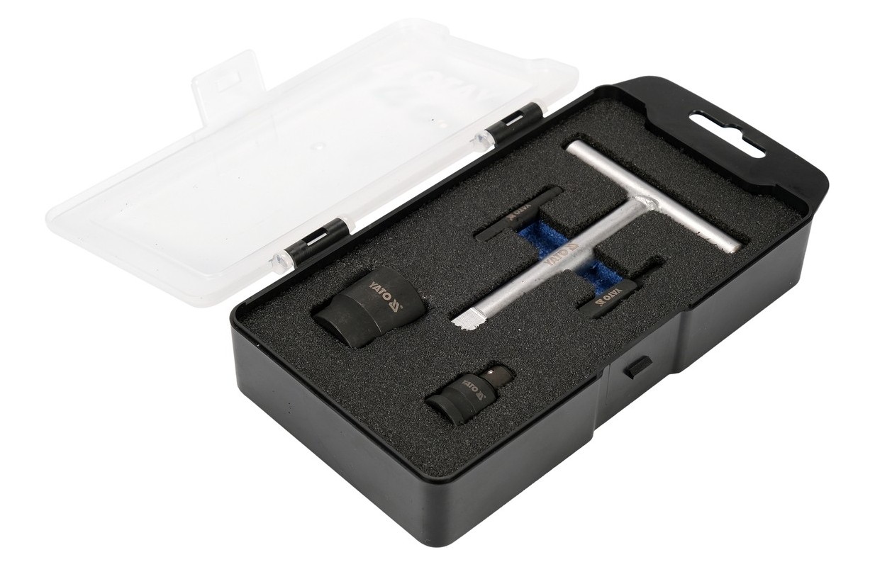The set allows you to handle 4 typesóof oil plugs. It is essential for safely unscrewing and screwing the plugsóon. It has a T-type knob with a design thatóra ensures the correct screwing torque, so that the plugs do not get caught in the threads of the oil pans.