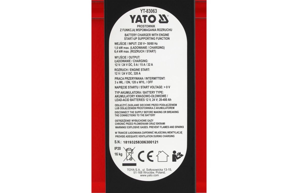 Charger with starter | 12/24 V | 20-400 A (YT-83063)