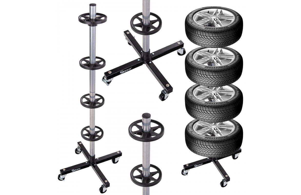 Riteņu turēšana: Stendam ir iespēja turēt 2 vai 4 riteņus, padarot to par ideālu risinājumu ziemas, vasaras vai rezerves riteņu komplektu uzglabāšanai, lietu sakopšanai un vietas ietaupīšanai jūsu garāžā vai darbnīcā.