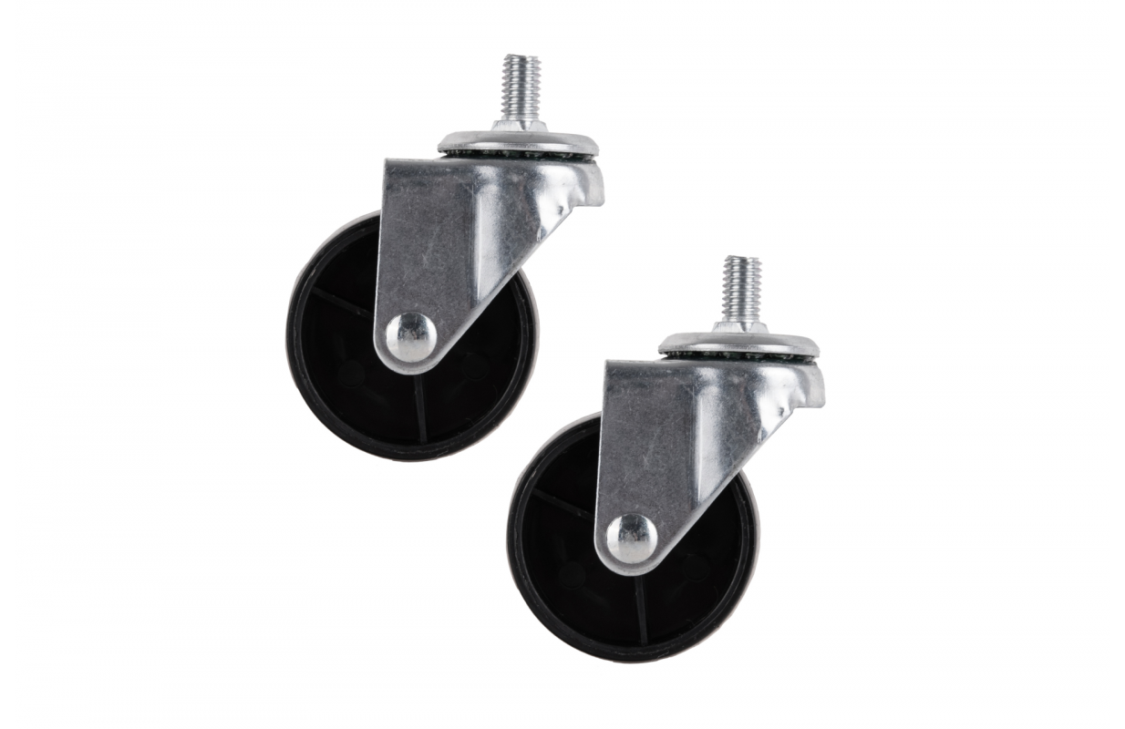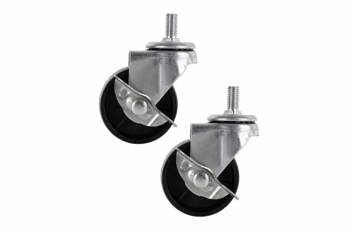 Bremzes: Divi no četriem riteņiem ir aprīkoti ar bremzēm, kas nodrošina stabilitāti un drošību statīva lietošanas laikā, ļaujot to apturēt vēlamajā vietā, neriskējot pārvietoties.