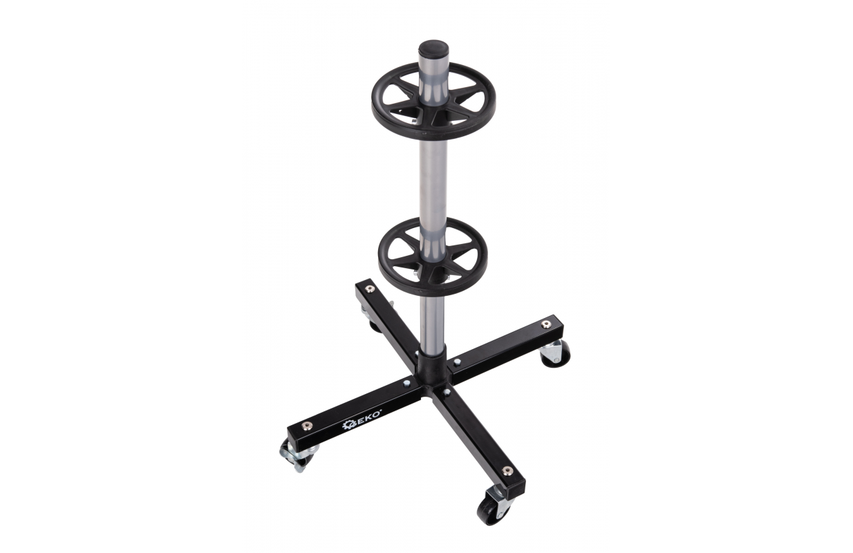 Maksimālā kravnesība: Stendā var turēt ritentiņus ar maksimālo svaru līdz 100 kg, kas padara to piemērotu lielākajai daļai standarta automašīnu riteņu komplektu.