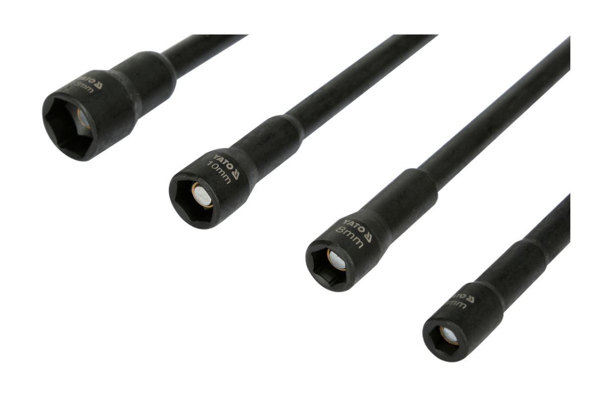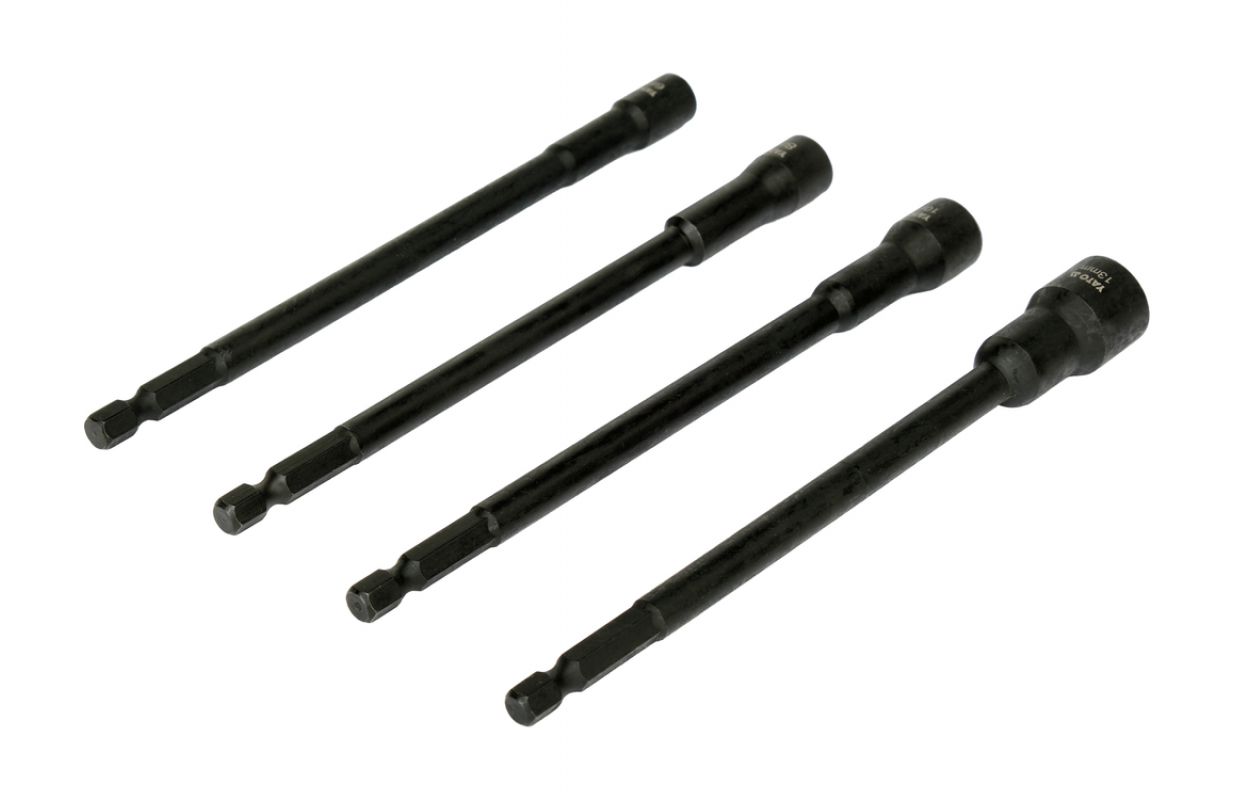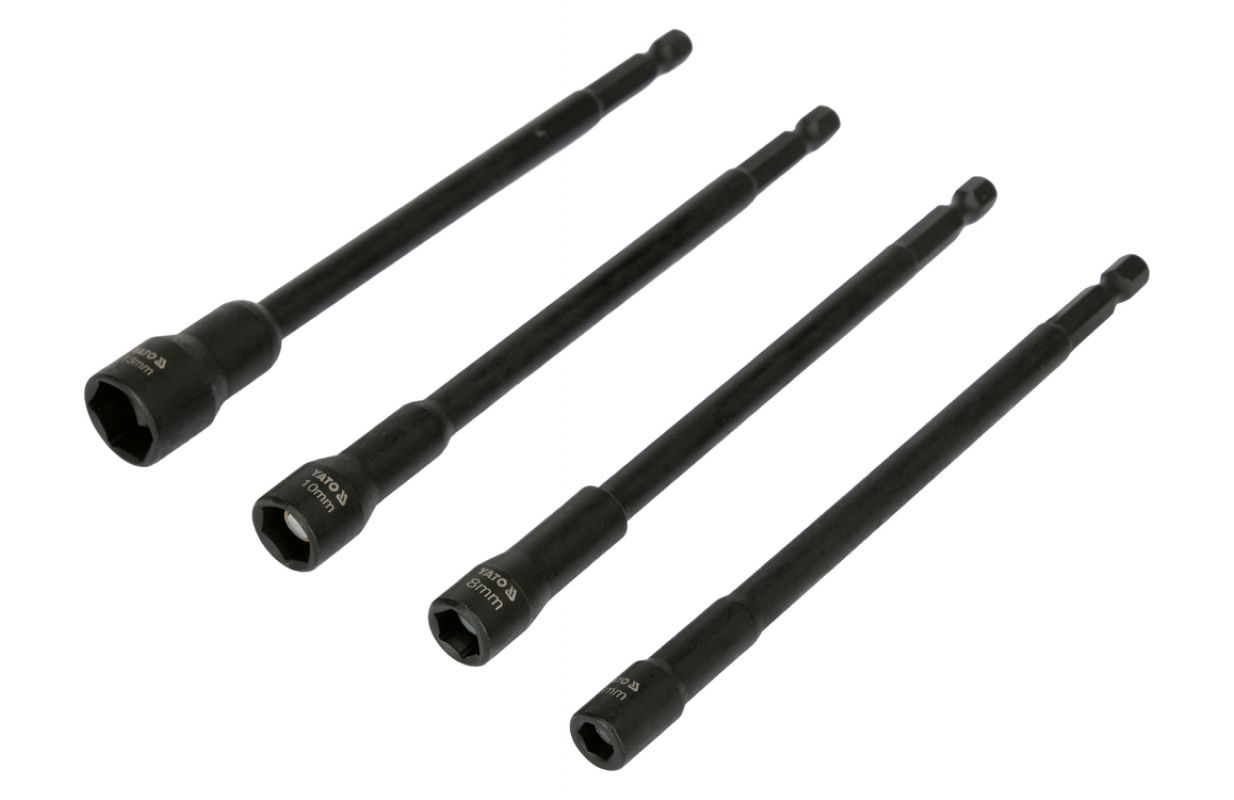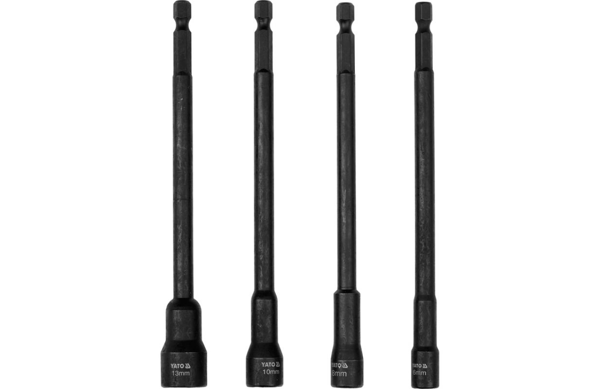 izmēri 6, 8, 10, 13 mm aptver populāros skrūvju un uzgriežņu diametrus, kas tiek izmantoti tērauda konstrukcijās, mēbeļu montāžā, jumta darbos un tehniskajās uzstādēs garums 150 mm ļauj strādāt dziļās atverēs, šaurās telpās un vietās ar ierobežotu piekļuvi 1/4" (6,3 mm) Hex patrons nodrošina saderību ar lielāko daļu akumulatora skrūvgriežu un urbiem ar ātrās uzgriežņu patronām, un stabila sēdēšana patronā samazina slīdēšanas risku intensīvas darba laikā magnētiskais uzgalis notur skrūvi vai uzgriezni bitēs, atvieglojot montāžu ar vienu roku un samazinot komponentu krišanas risku augstas kvalitātes hrommolybdēna tērauds (CrV) izceļas ar paaugstinātu cietību un nodilumizturību Pielietojums: