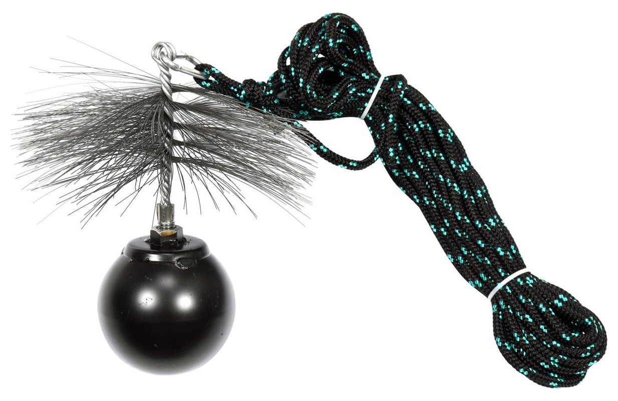 Elementu kopums, kas nepieciešams regulārai skursteņu tīrīšanai un izkraušanai. komplektā: kabelis, tīrīšanas stienis un bumba