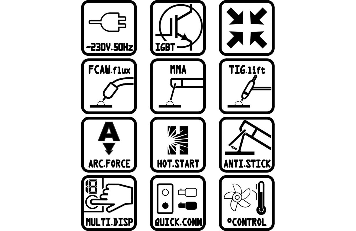 Funkcijas Hot Start, Arc Force, Anti-Stick - pateicoties šīm funkcijām, darbs ar metināšanas aparātu būs ērts un efektīvs.