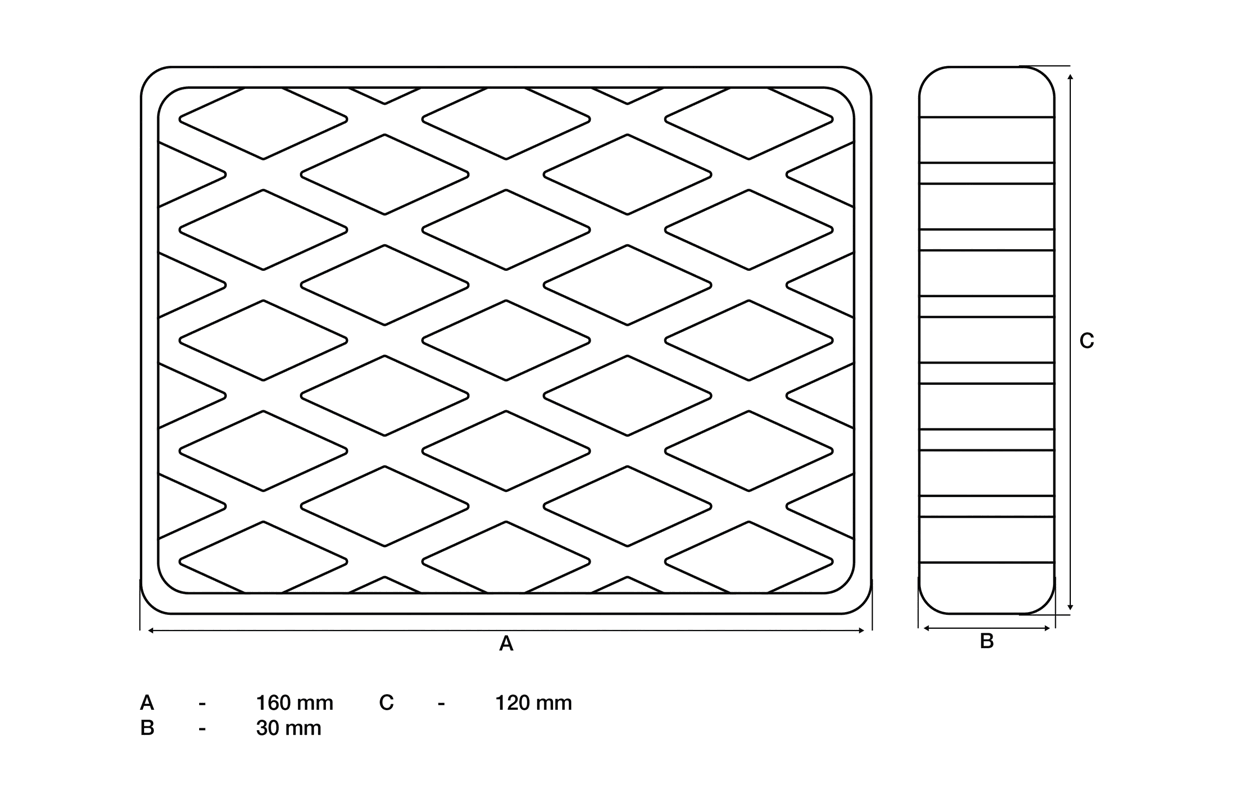 Gumijas paliktnis | auto pacēlājiem | 160 x 120 x 30 mm (7006)