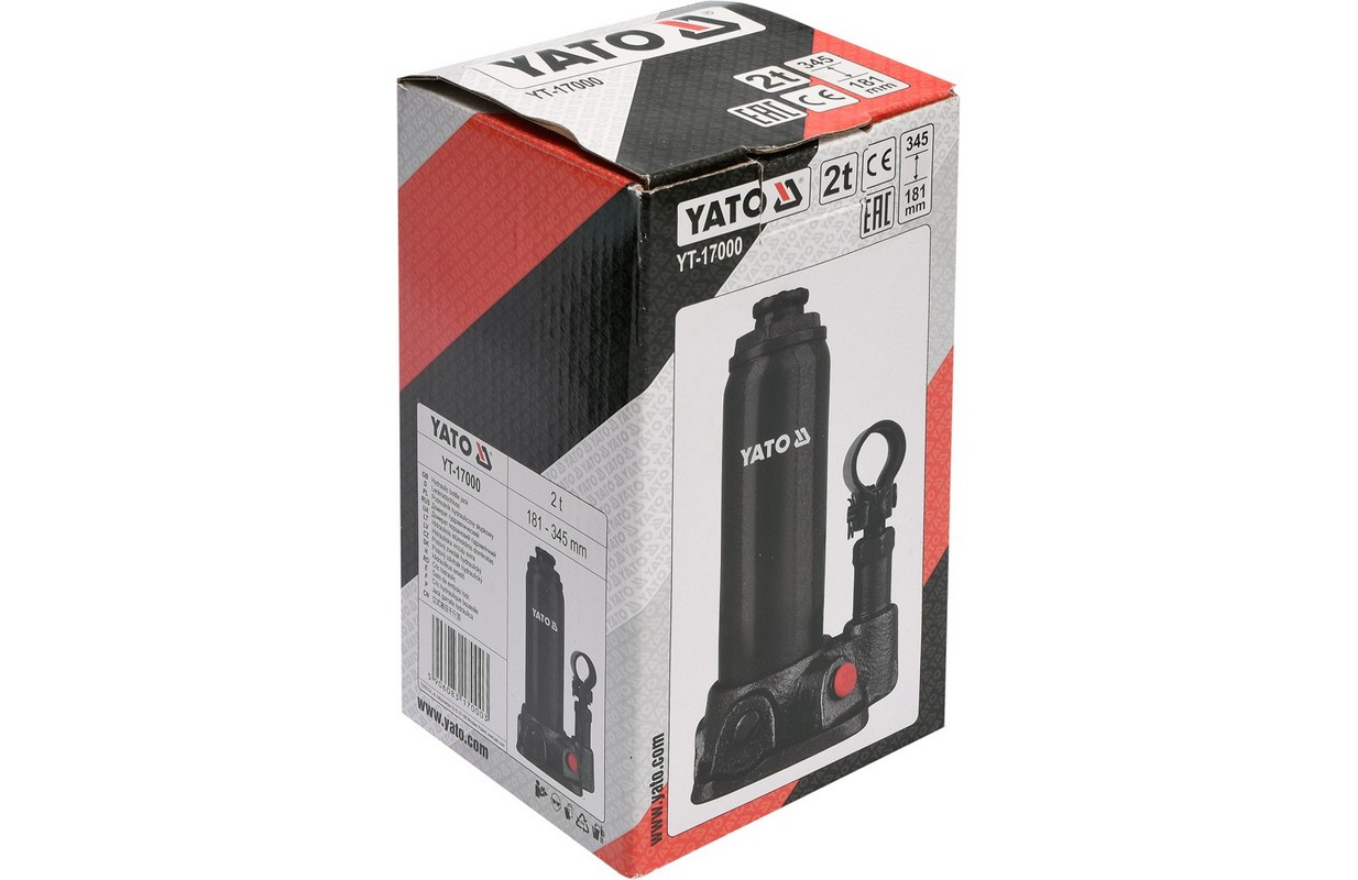 Profesionāls hidrauliskais pacēlājs YATO ar vārstu sistēmu, kas precīzi dod eļļas plūsmu. Celtspēja ir 2 tonnas, pacelšanas diapazons ir no 181 mm līdz 345 mm. Tas atšķiras pēc maza izmēra un svara, kas ir svarīgi iekraušanas un izkraušanas darbībām un uzglabāšanai. Neaizstājams automašīnu remontdarbnīcās un degvielas uzpildes stacijās.