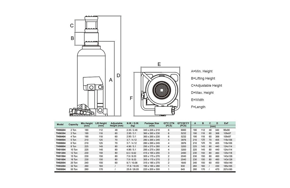 Metināts hidrauliskais pudeļu domkrats - 3,0t, Hmin/max-188/363mm (TH90304)