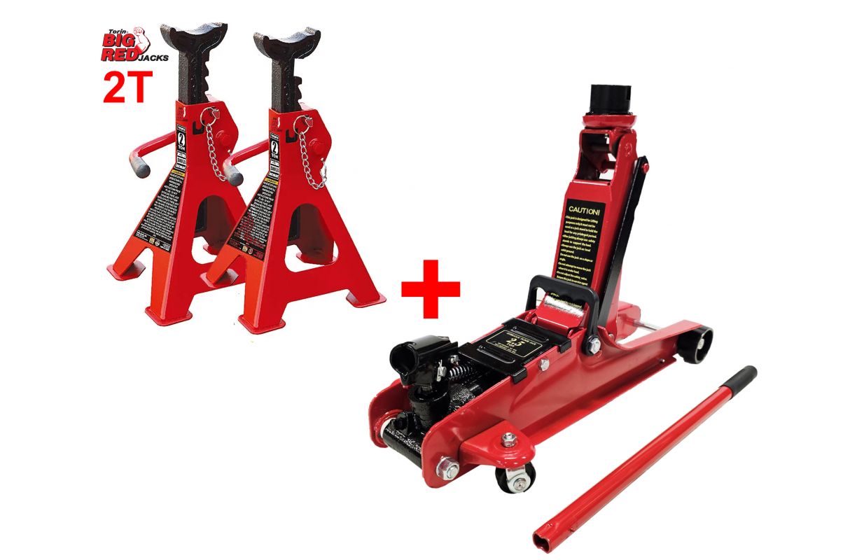 Komplekts: Hidrauliskais velmēšanas domkrats 2.5t + Pastiprināts drošības statīvs 2T, 2 gab BIG RED