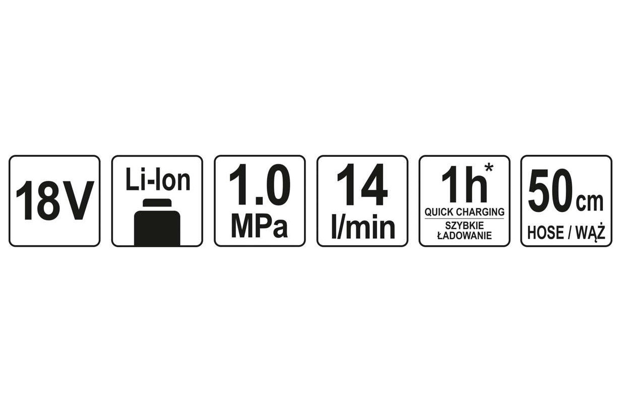 Pieejami rezerves akumulatori: 2 Ah (YT-82842), 3 Ah (YT-82843), 4 Ah (YT-82844) un 6 Ah (YT-82845)