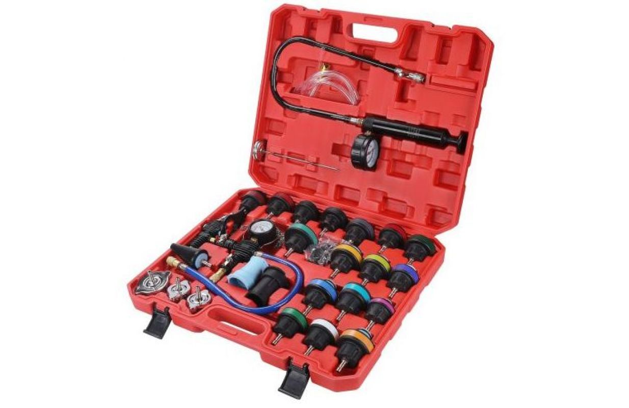 ✅ 27 gabalu komplekts radiatora noplūdes pārbaudei un ātrai dzesēšanas šķidruma maiņai.