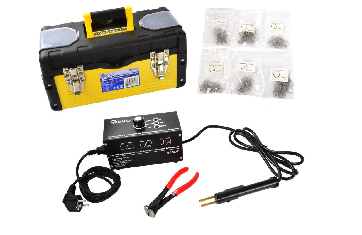 Ierīce ar specializētu skavu palīdzību nodrošina pastāvīgu salauztā elementa savienojumu, vienlaikus neļaujot tam atkal salūzt tajā pašā vietā. Lieliski piemērots automašīnu virsbūves salauzto plastmasas detaļu, motociklu apšuvuma elementu, kā arī dažāda veida sadzīves tehnikas remontam. Komplektā ietilpst nerūsējošā tērauda skavu komplekts (trīs veidu skavas 2 izmēros, kopā 600 gab.).