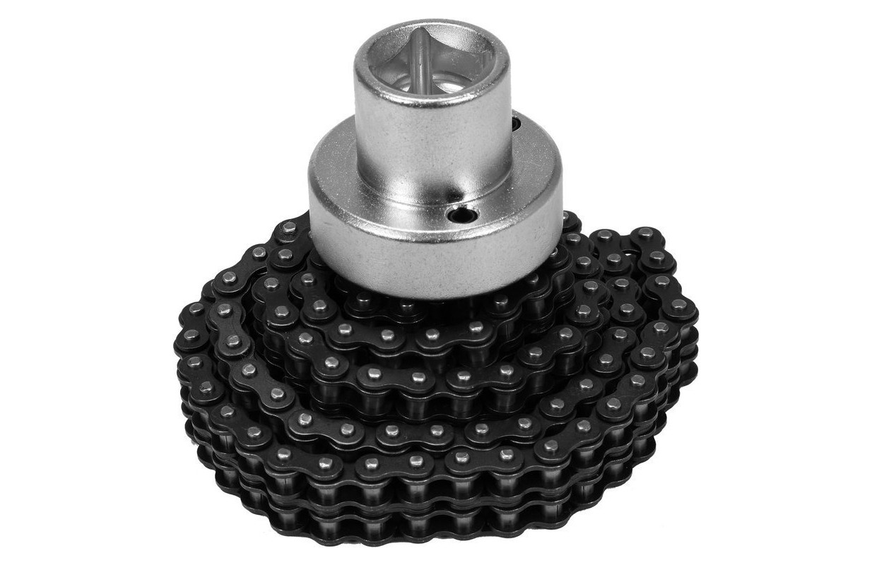 Divkāršā ķēdes atslēga tērauda eļļas filtriem ar diametru no 60 līdz 170 mm. Ieteicams mehāniskajām darbnīcām un autoservisiem.