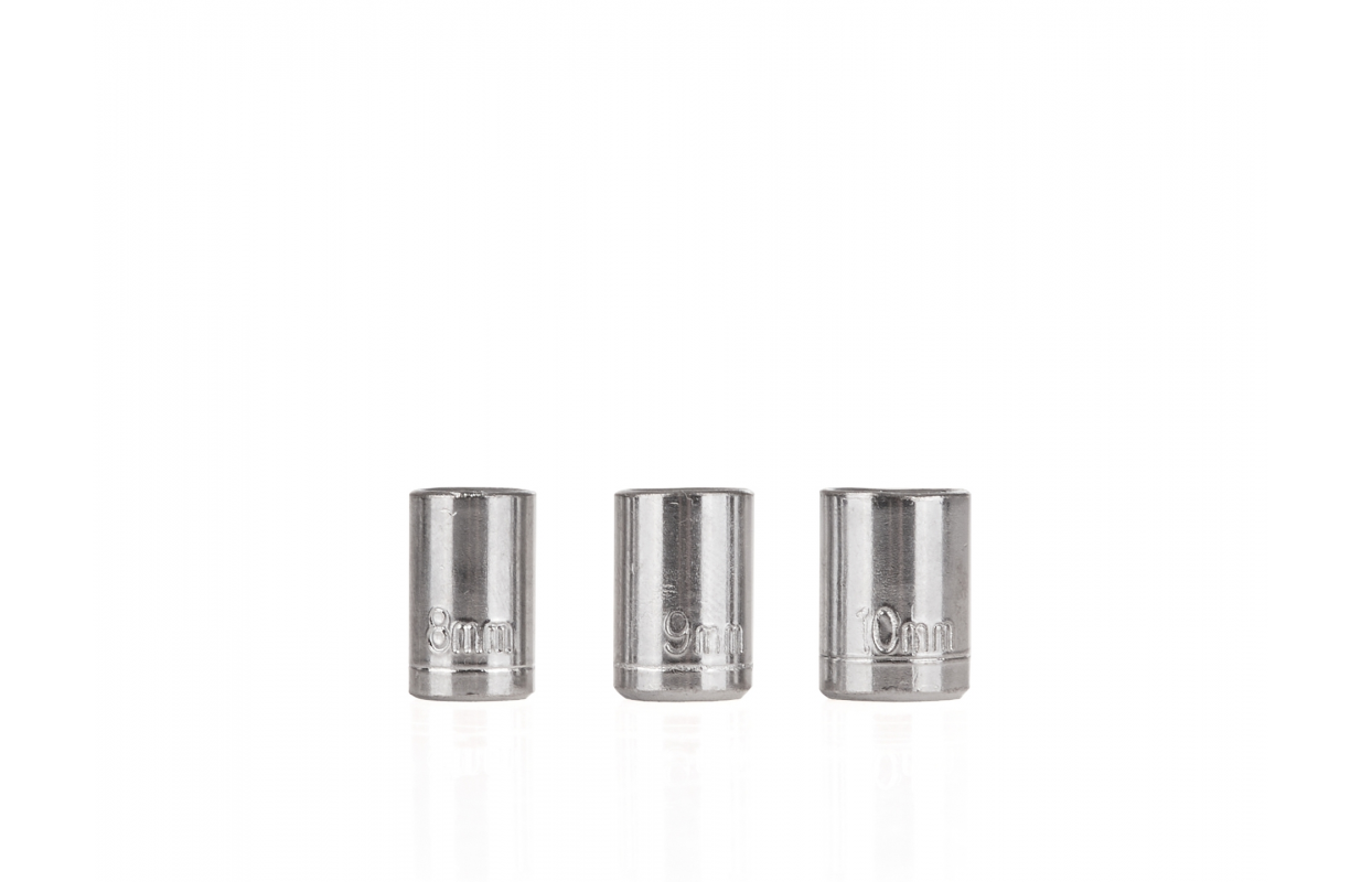 Pārklājumi 8, 9, 10mm: Spilventiņi ļauj darbināt specializētus velosipēdu elementus, piemēram, riteņu asis vai apakšējos kronšteinus, nodrošinot visaptverošu komplekta funkcionalitāti.