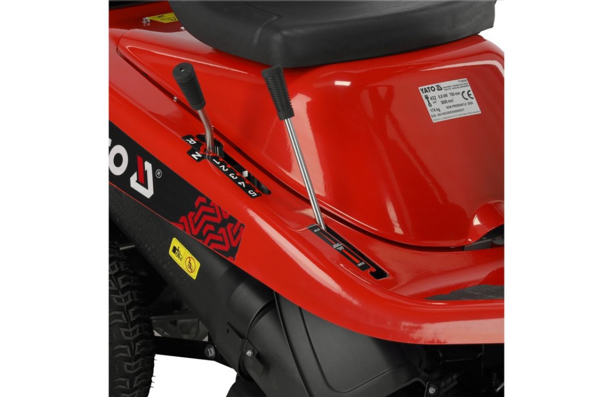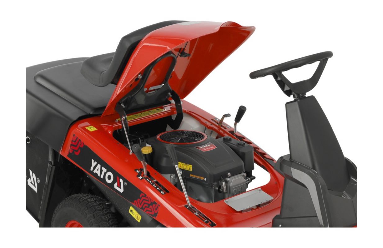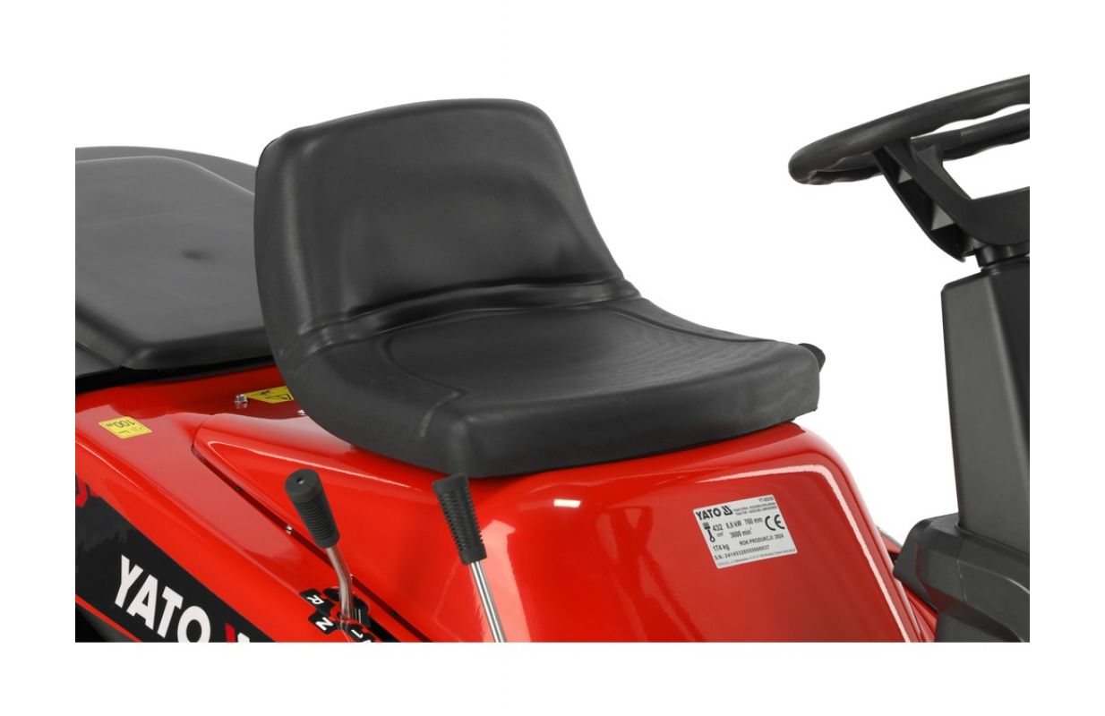 Traktors ir aprīkots ar elektrisko starteri un ietilpīgu 170 litru tvertni, kas atvieglo zāles savākšanu no lielākām platībām. Tas var darboties 3 režīmos - zāles mešana grozā vai uz sāniem un mulčēšana, dabiski mēslojot zālienu. Lielie riteņi palīdz manevrēt pat sarežģītās un sarežģītās vietās, piemēram, slīpumā vai nelīdzenā zemē.