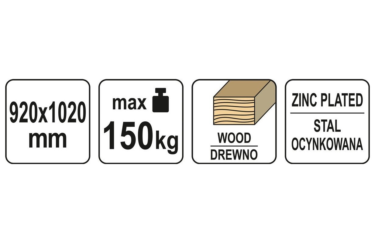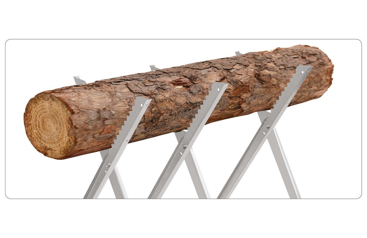 Koka griešanas statīvs Izgatavots no 1,5 mm biezas cinkotas tērauda loksnes, augstums apm.920mm, platums apm.1020mm. kravnesība ir aptuveni 150 kg, maksimālais griezto stumbru diametrs ir aptuveni 250 mm. Kaza ir salokāma un aizņem ļoti maz vietas, tāpēc to ir viegli transportēt un uzglabāt. Specifiskais dizains ļauj ar motorzāģi nogriezt visu bagāžnieku, neizslēdzot un nenolaižot zāģi, kā arī nepārvietojot bagāžnieku.
