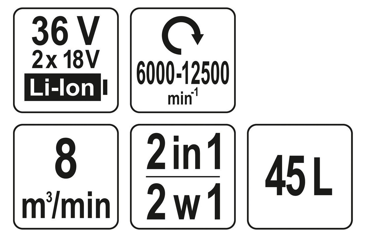 Pieejami rezerves akumulatori: 2 Ah (YT-82842), 3 Ah (YT-82843), 4 Ah (YT-82844) un 6 Ah (YT-82845)