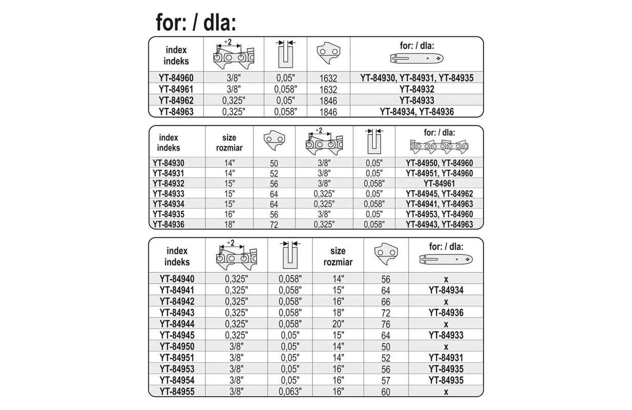 • Graduācija [collas]: 1/4"/0,325"/3/8"/0,404"/90-91