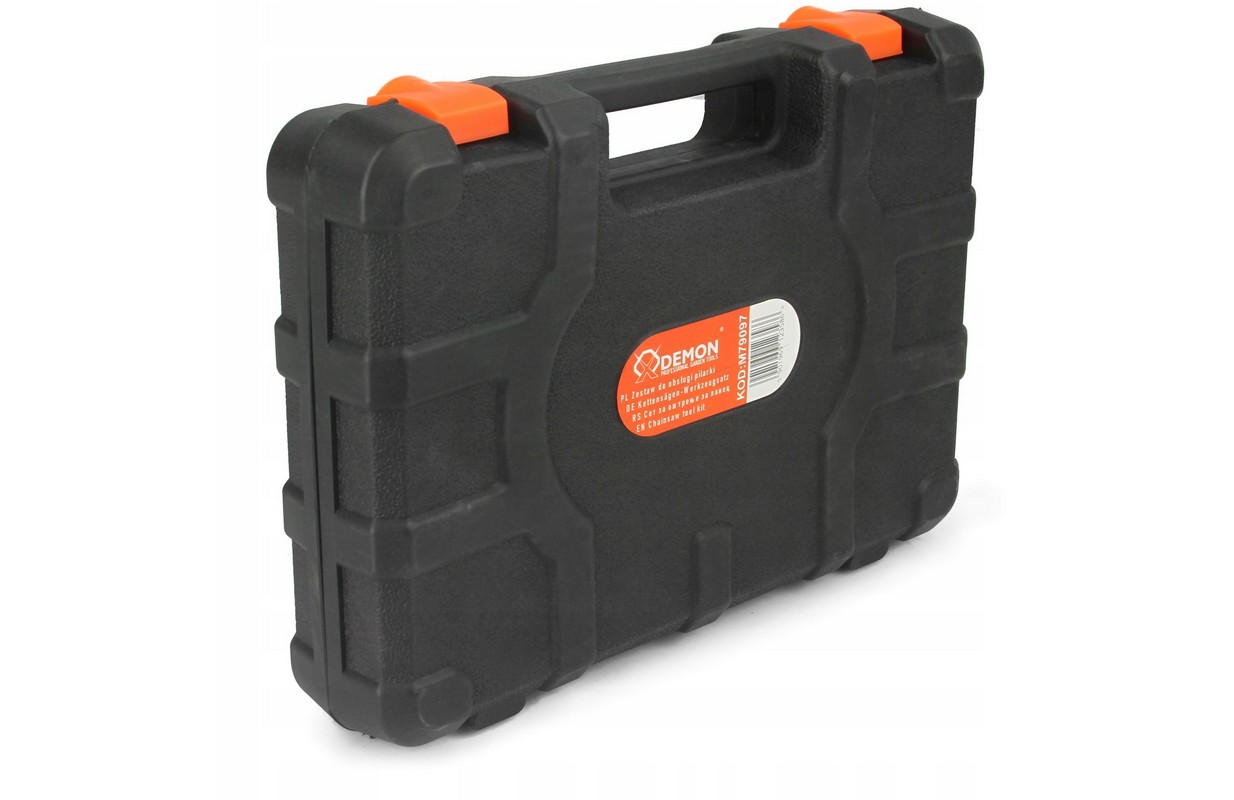 Komplekts DEMON zīmola motorzāģiem ērtā futrālī.